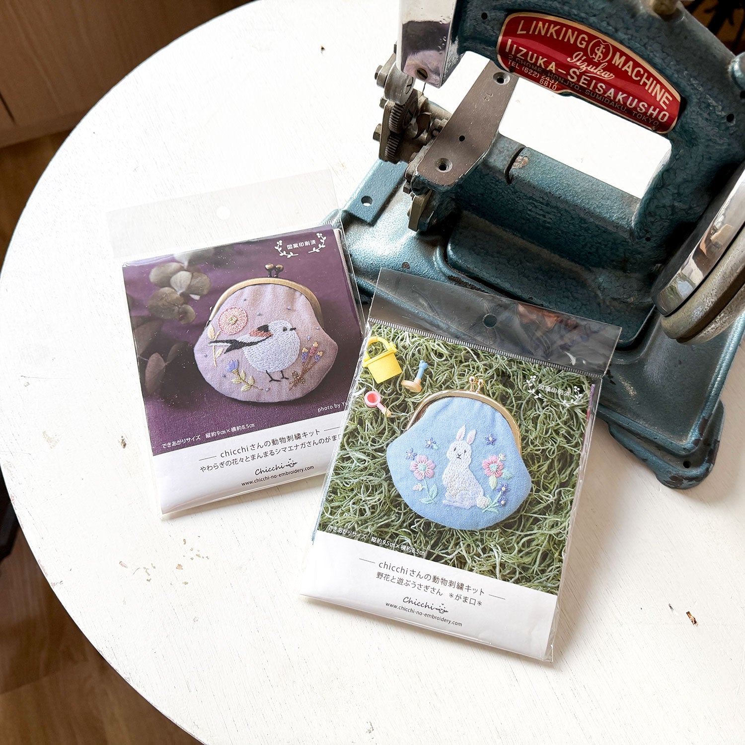 こちらを見ているうさぎさんと、まん丸としたシマエナガさんの可愛らしい刺繍を楽しめます。