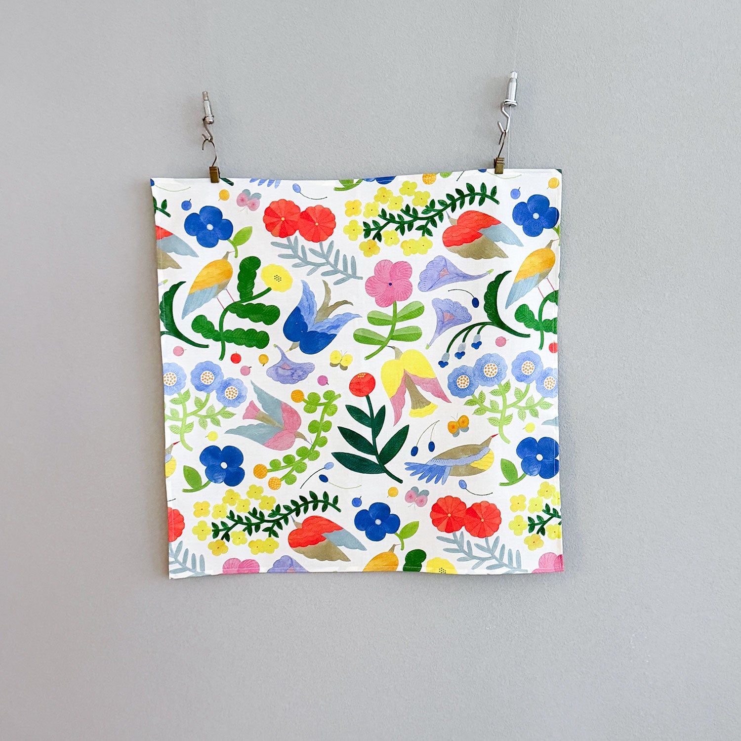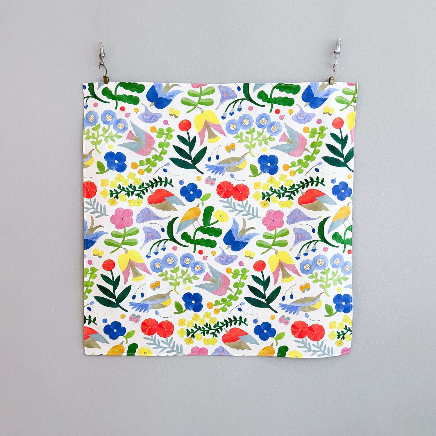 小:50cm × 50cmと大:72cm × 72cmの2サイズ展開のマルチクロスは、名前の通り大判ハンカチや風呂敷、テーブルクロス、目隠し布など様々な用途でご使用いただけます。