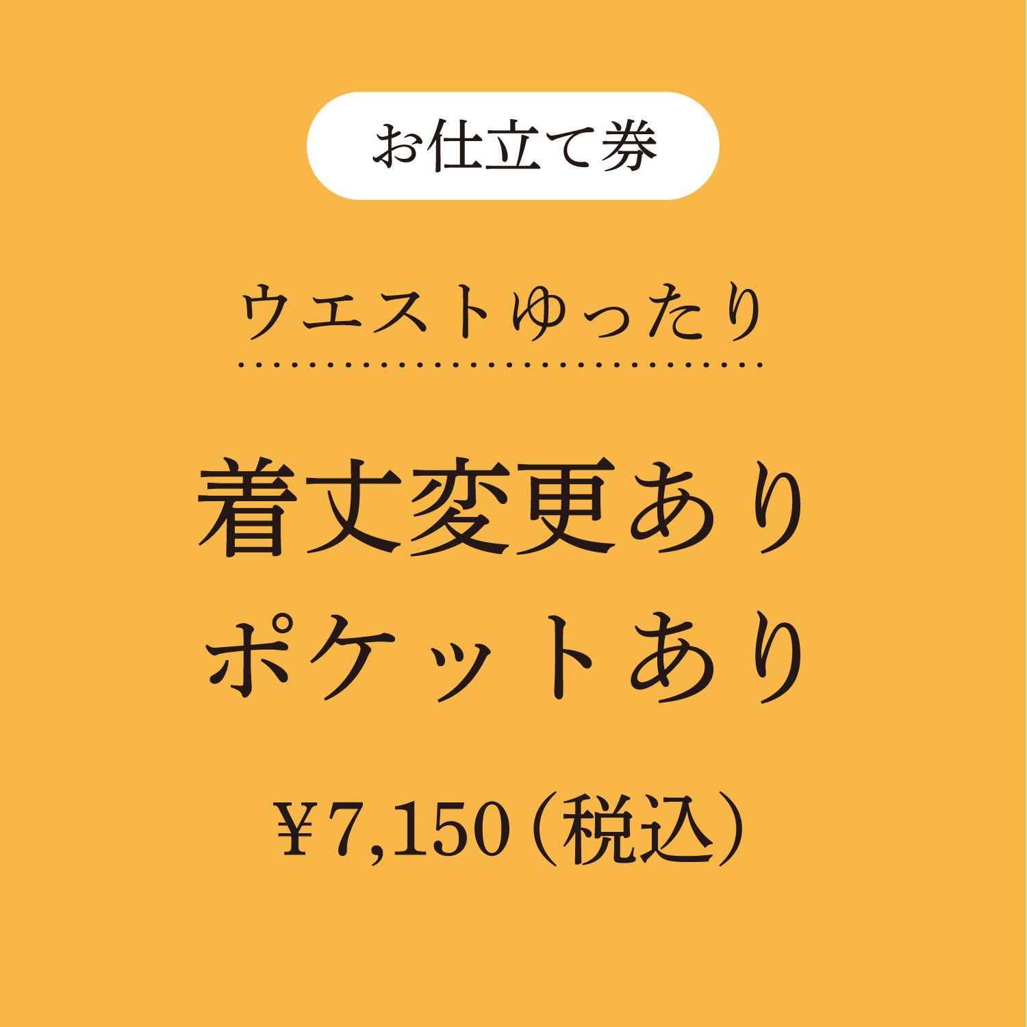 着丈の変更、ポケット追加、ウエストゴムの変更が可能です。