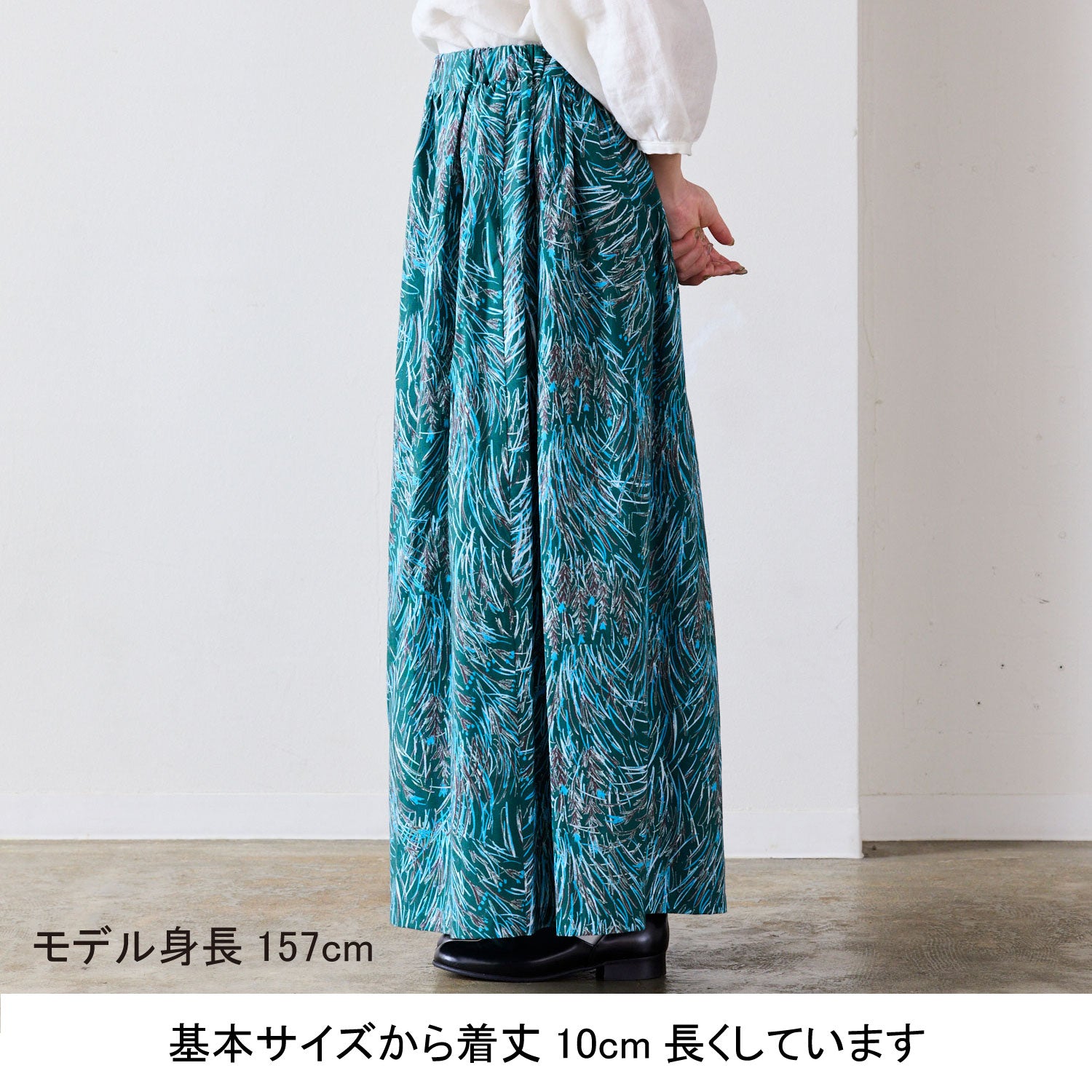 ギャザーにより生地の落ち感やたゆみが綺麗に出ています。
