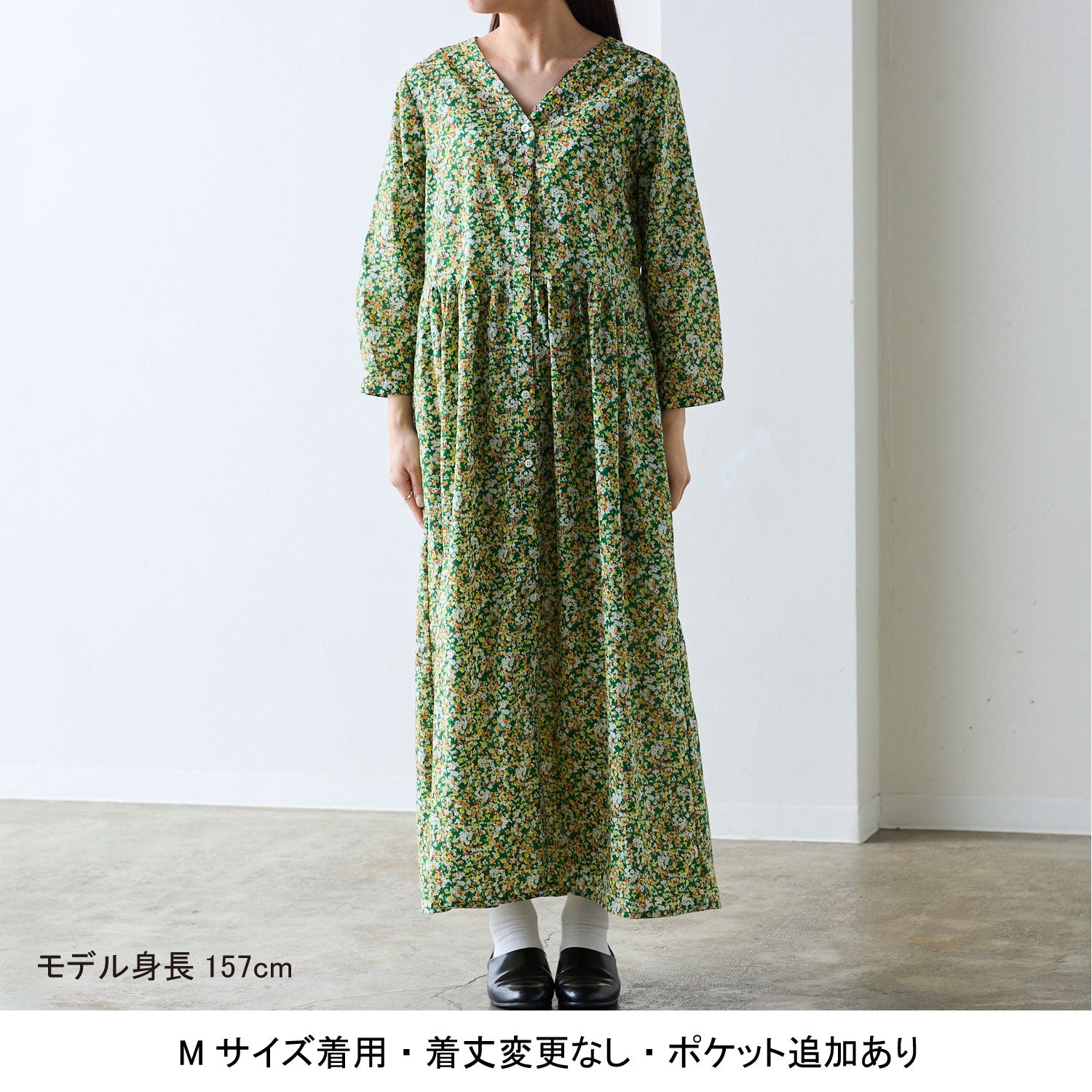 ウエストの切り返しギャザーにより、ふんわりとした大人の女性らしいシルエットです。