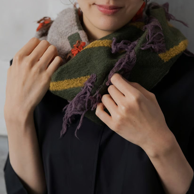 秋冬に欠かせない あったかウールのカットジャカードストールに、気軽に身に着けやすいスヌードが登場しました。