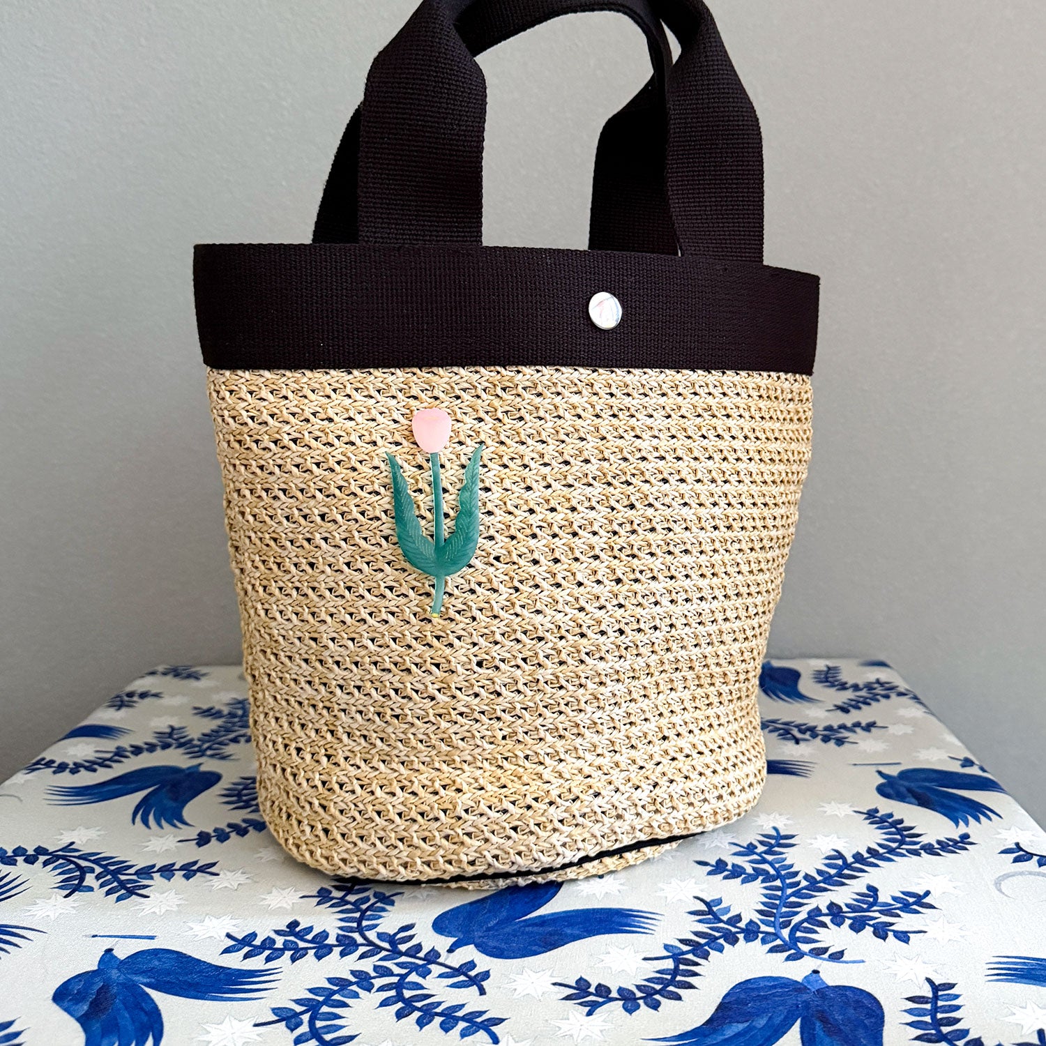 裏面はピンになっているので、お洋服やカバン、帽子などに取り付けが可能です。