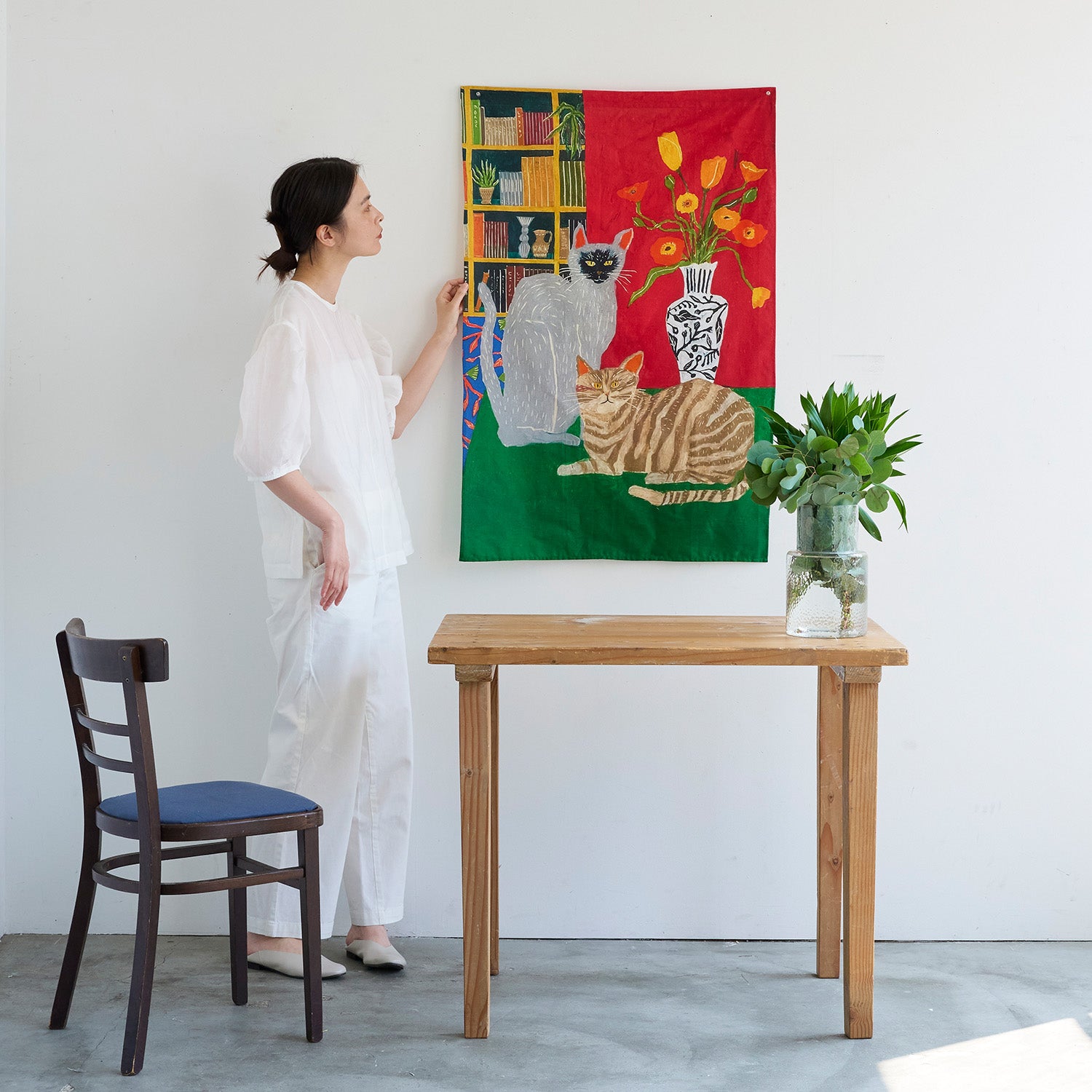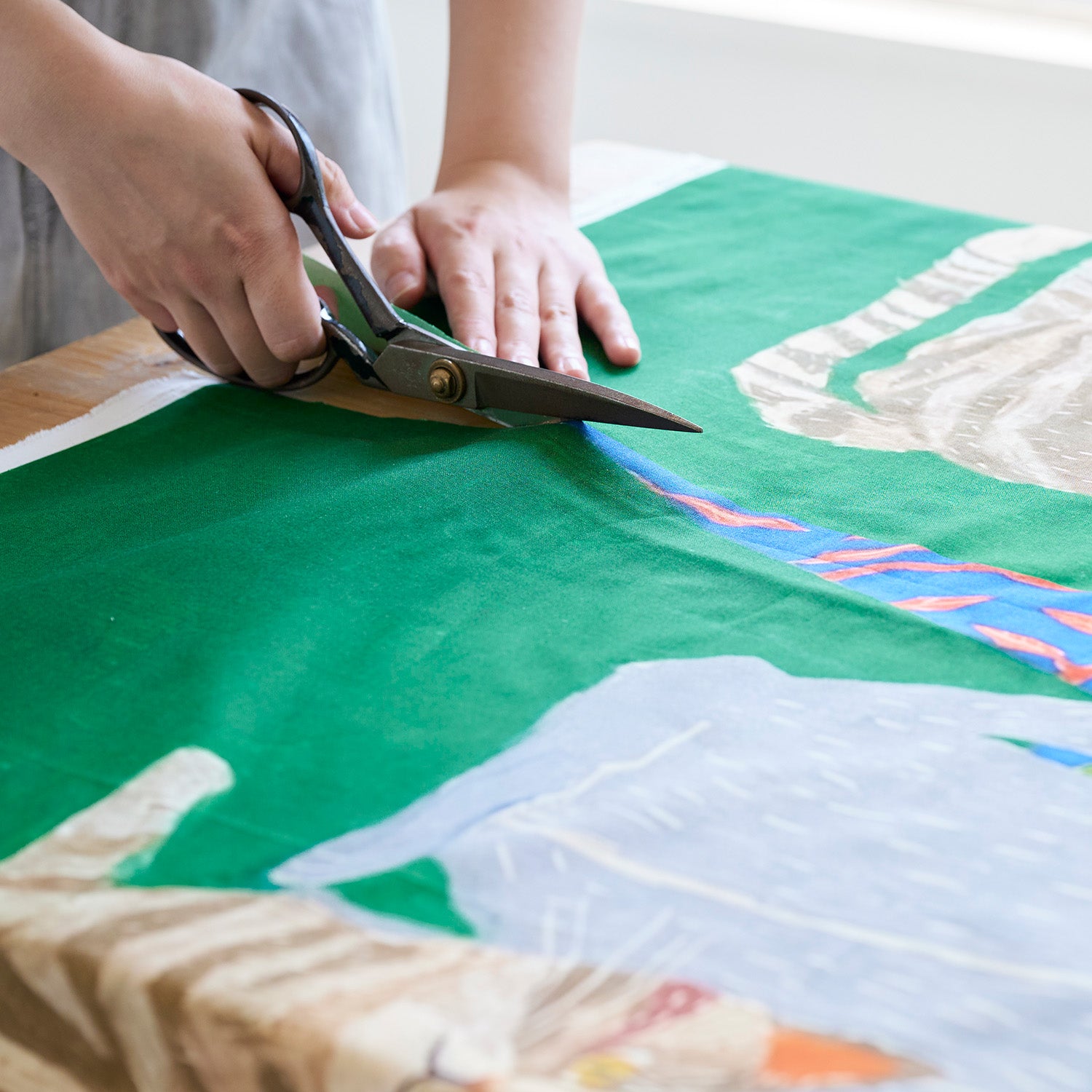 やや薄手の綿シーチングなのでお気に入りの場所を切り取ってクッションなどの小物にしてみたり、アレンジも楽しめます。