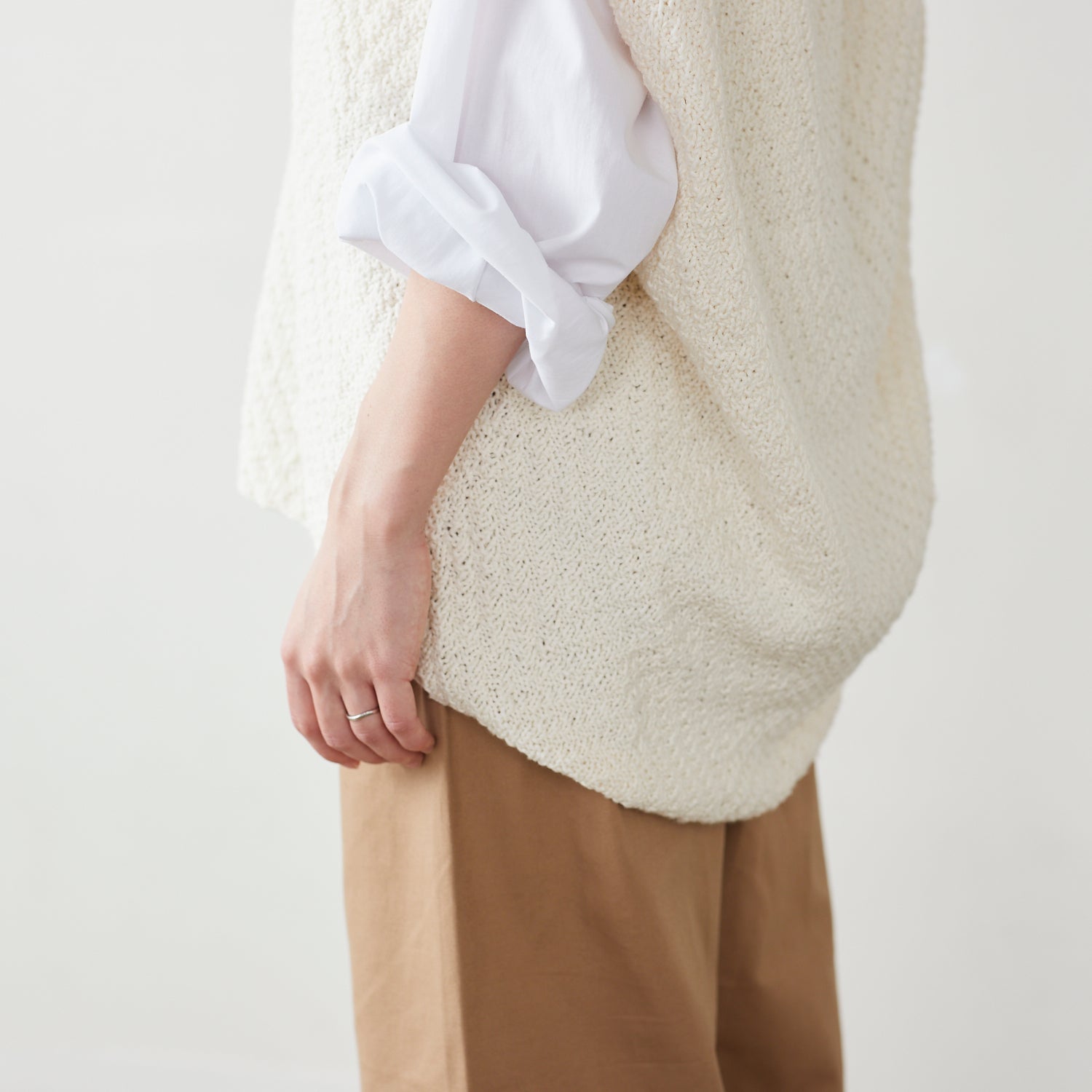 コットンの持つさらっとした肌触りがありながら、ウールの持つ柔らかくなめらかな軽いタッチで絶妙なバランスに仕上がりました。