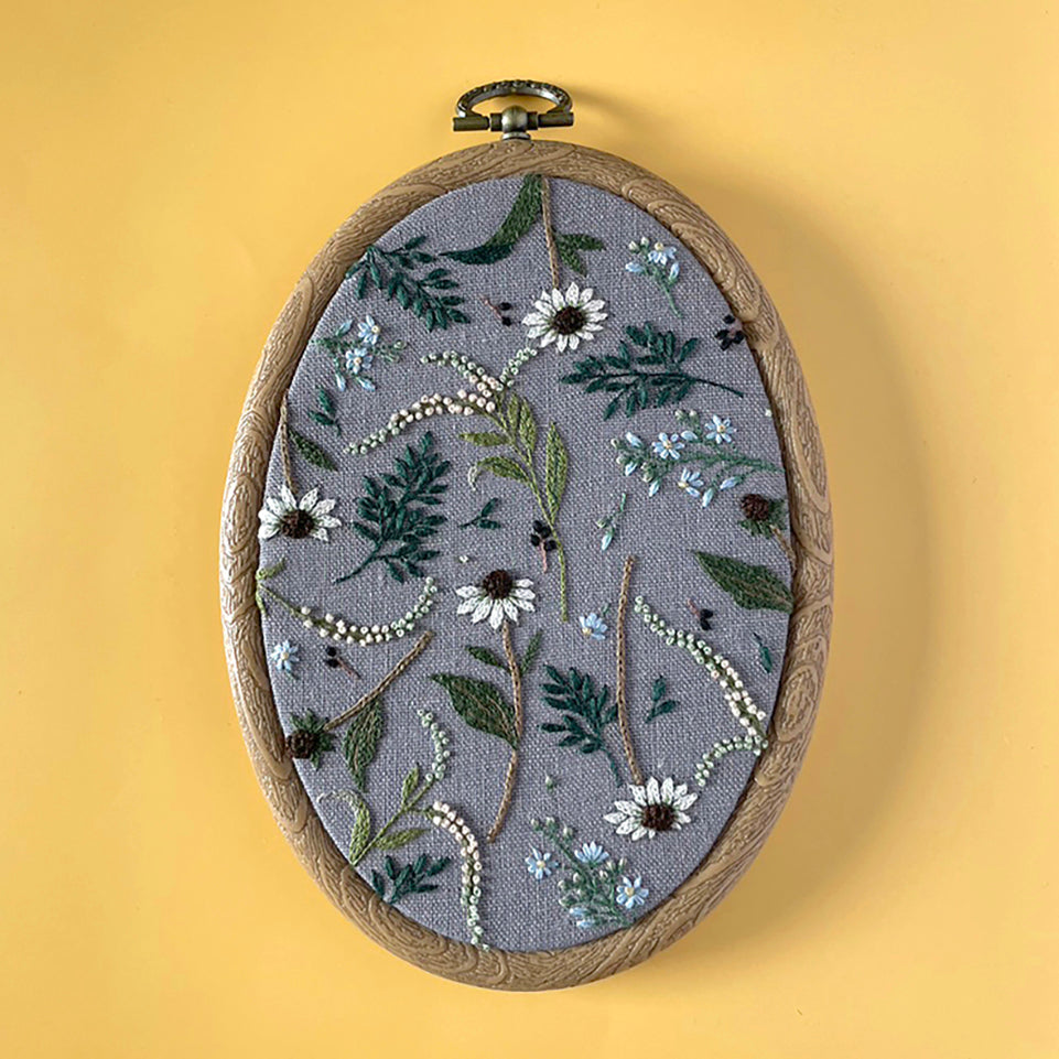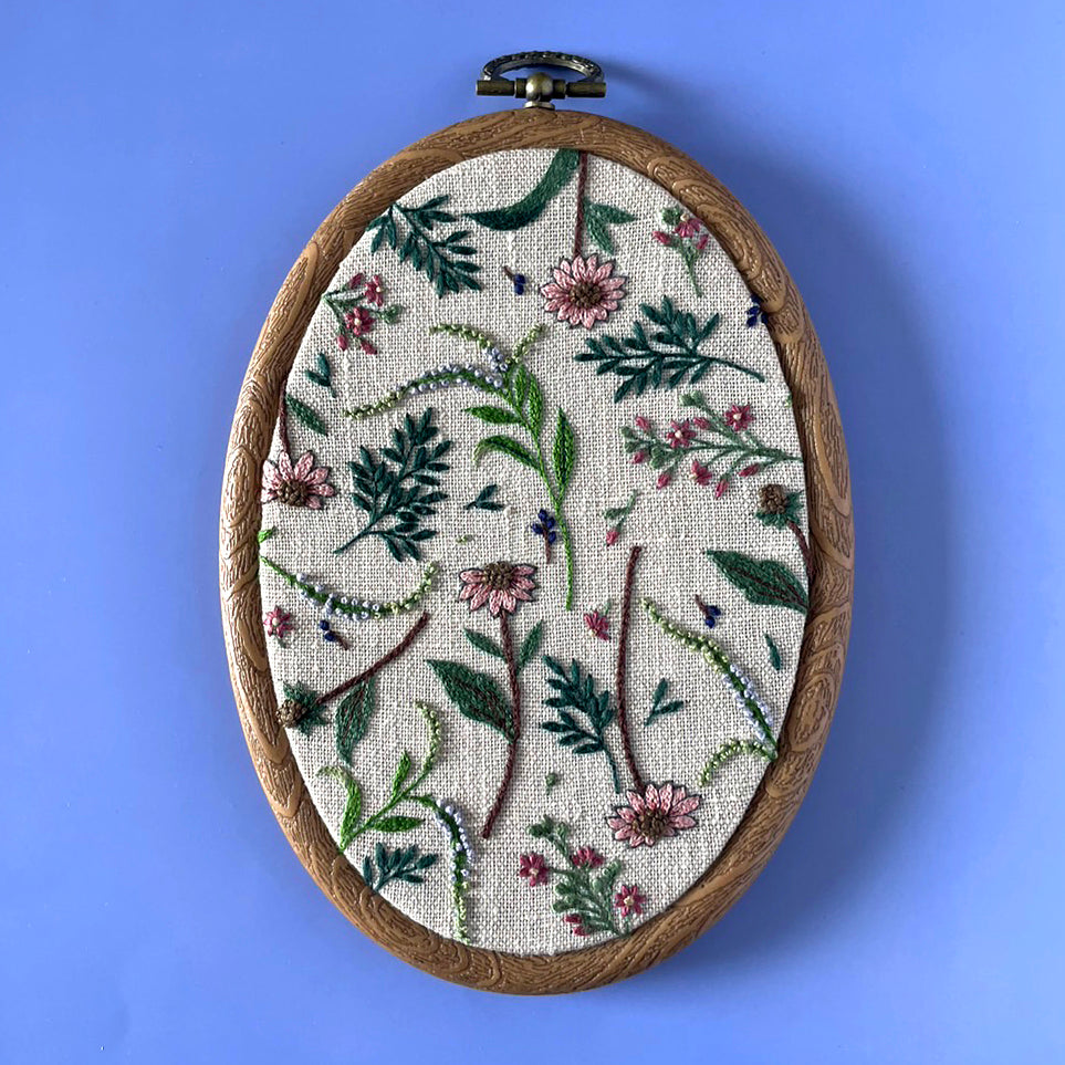 1本どり、2本どりのステッチで仕上げる繊細な刺繍フレーム。