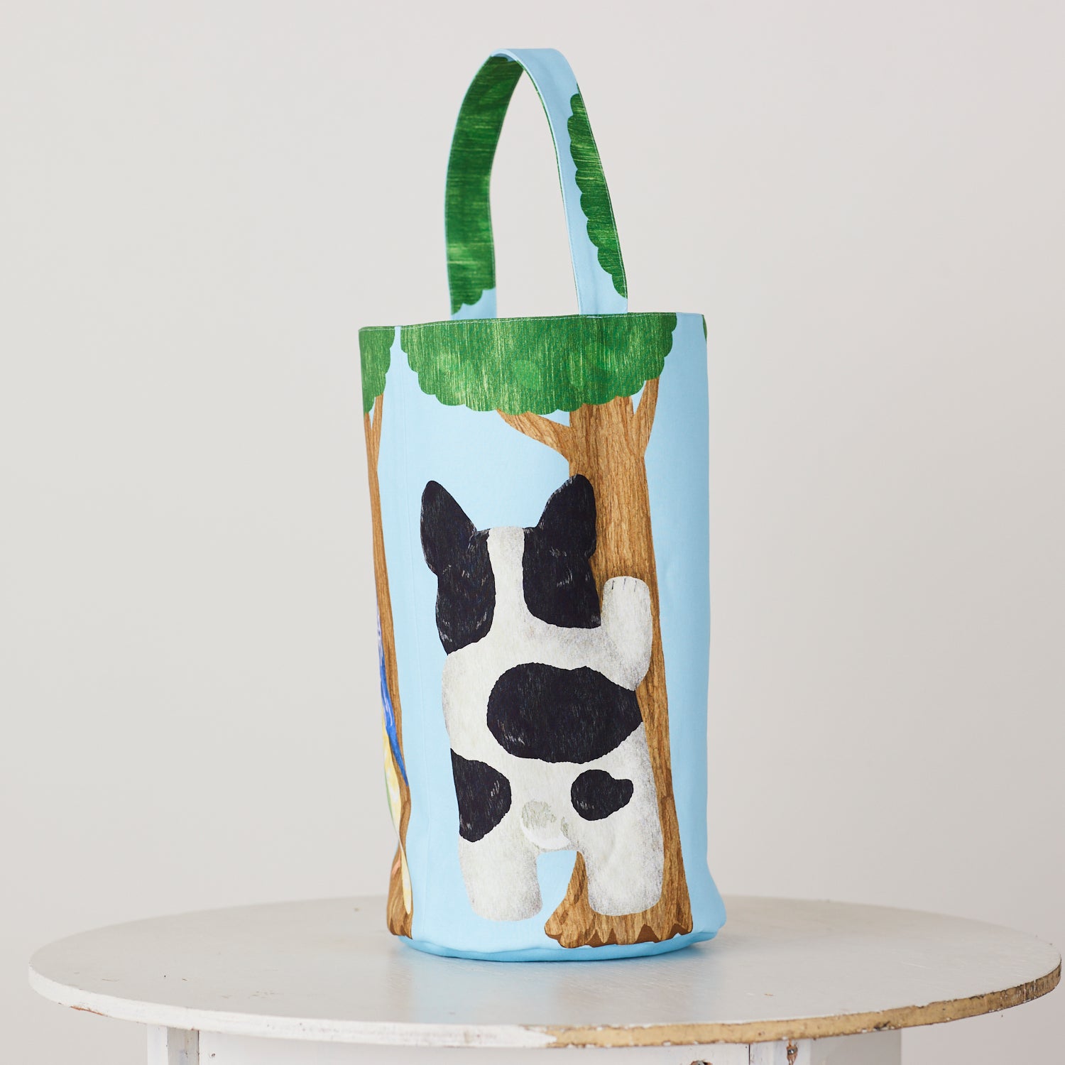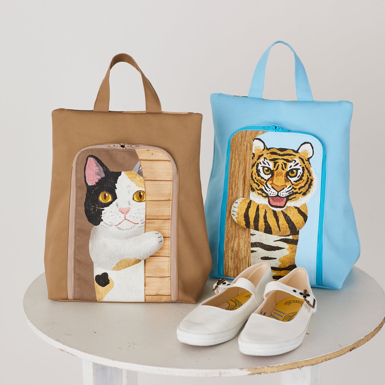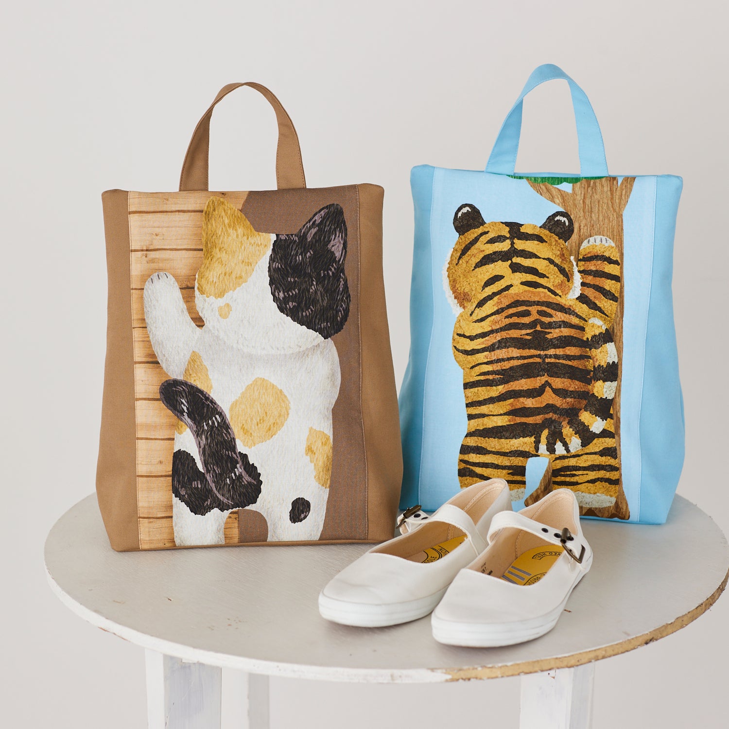 くるくる回すといろんな動物が表れる円形バッグやタブレットケース、トートバッグなどアイデア次第でお楽しみいただけます。