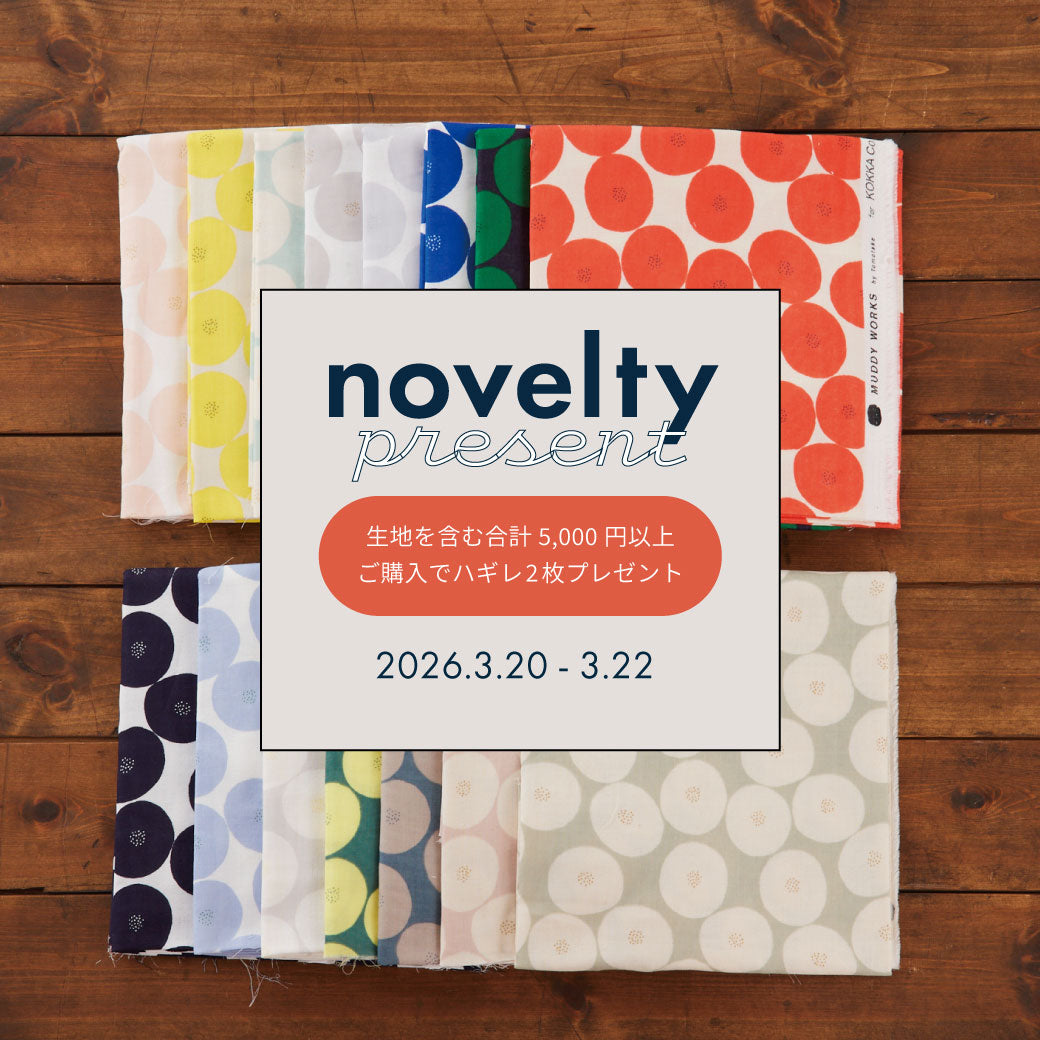 期間中に生地を含み合計5,000円(税込)以上お買い上げいただいた方にノベルティをプレゼント!