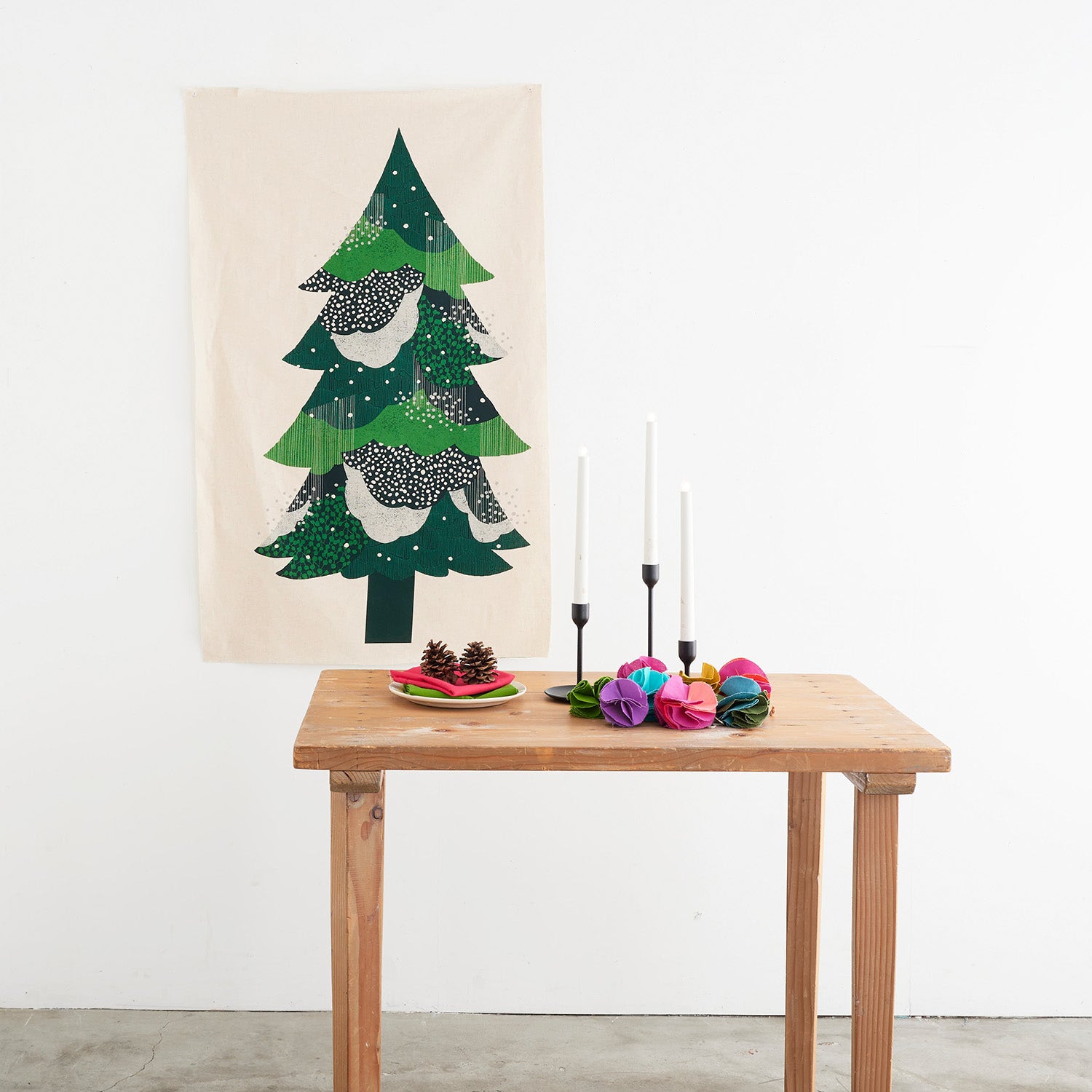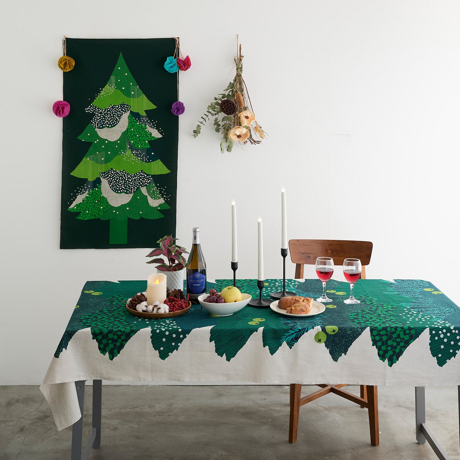 タペストリーとして壁に貼ってお気に入りのオーナメントと飾ってみたり、テーブルクロスにしてホリデー気分を味わうのも