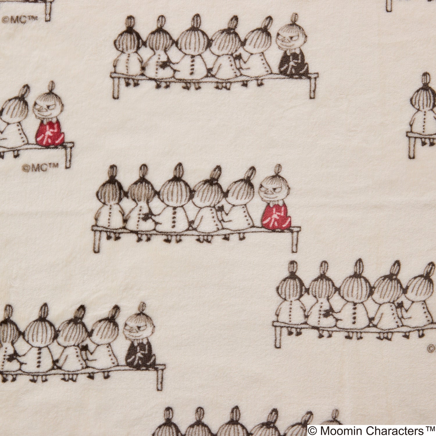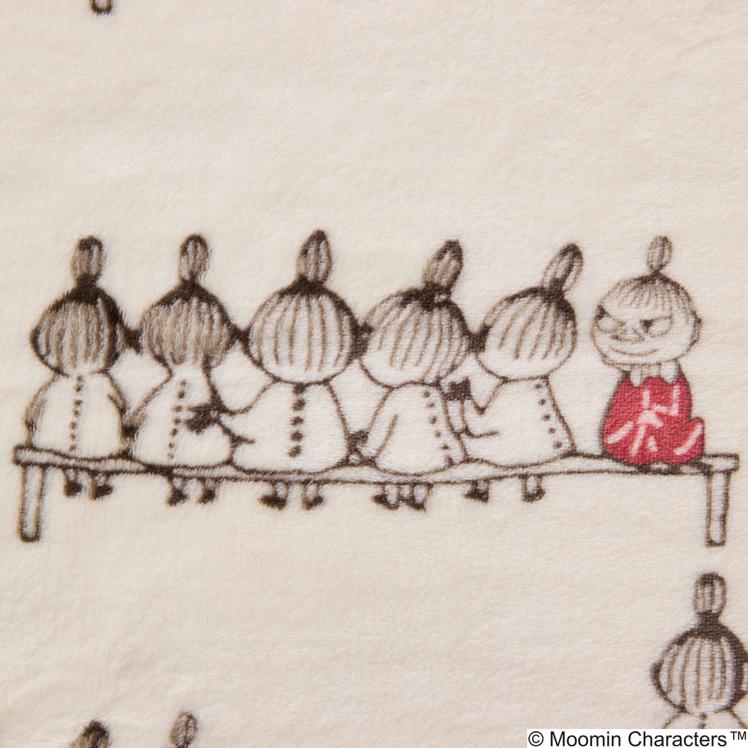 リトルミイとリトルミイのきょうだいたちがちょこんと座っている姿が可愛らしい柄です。