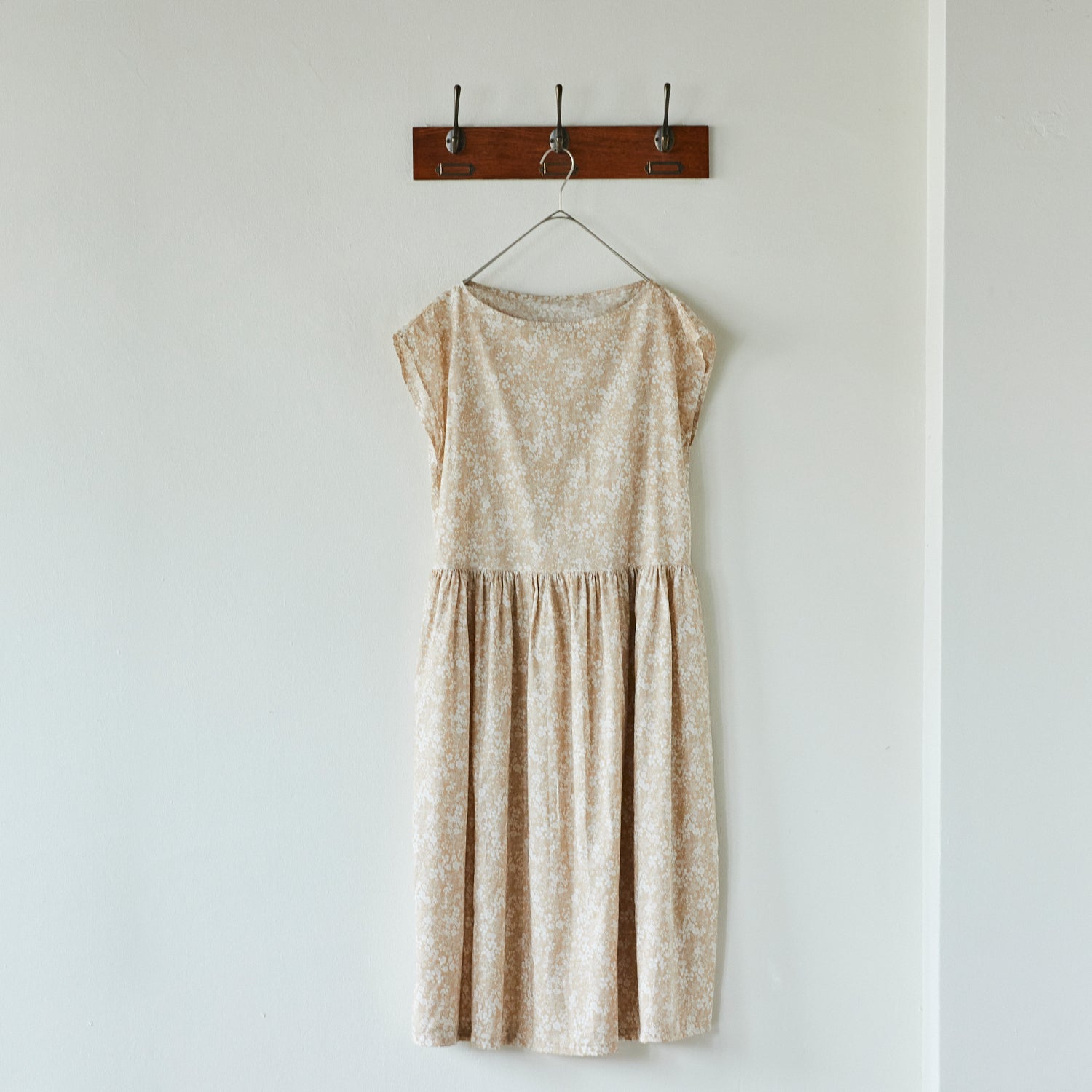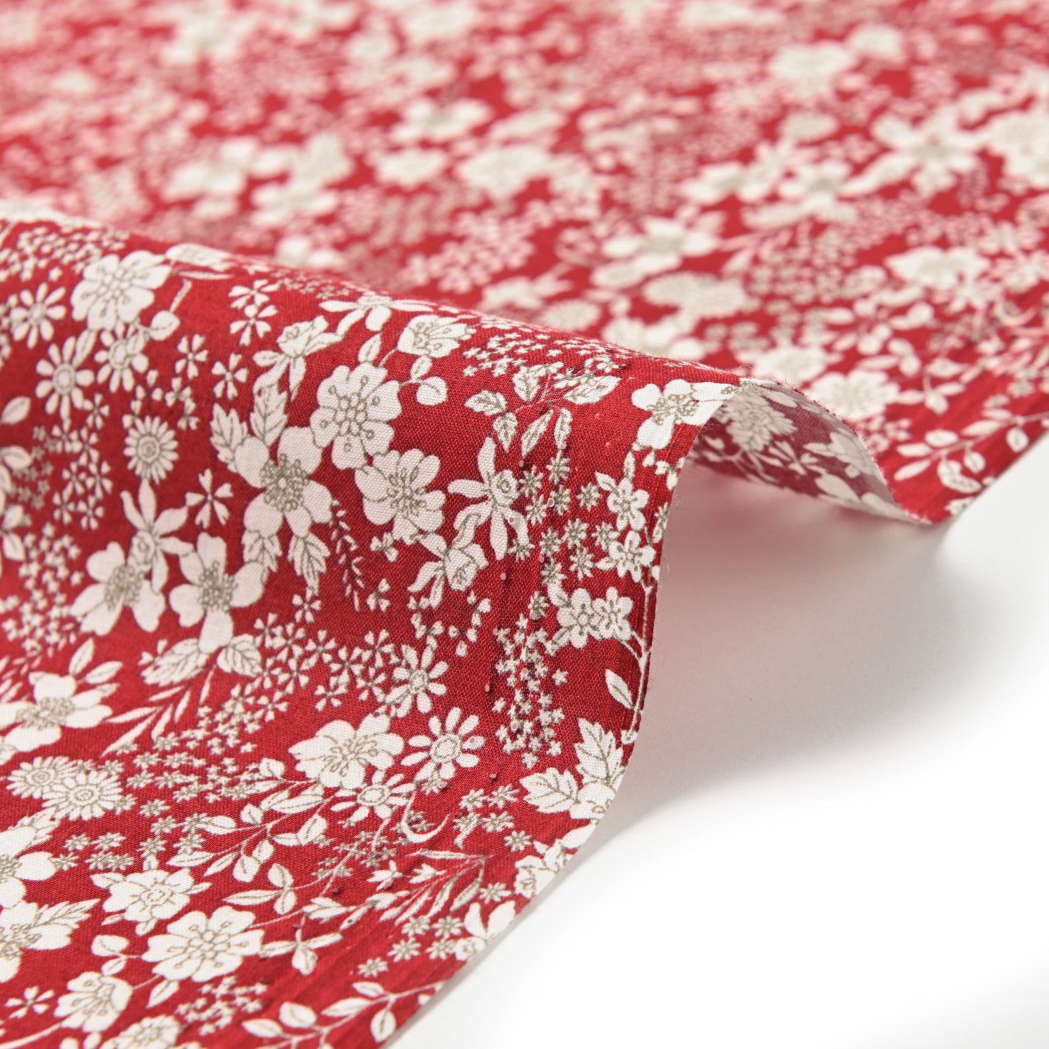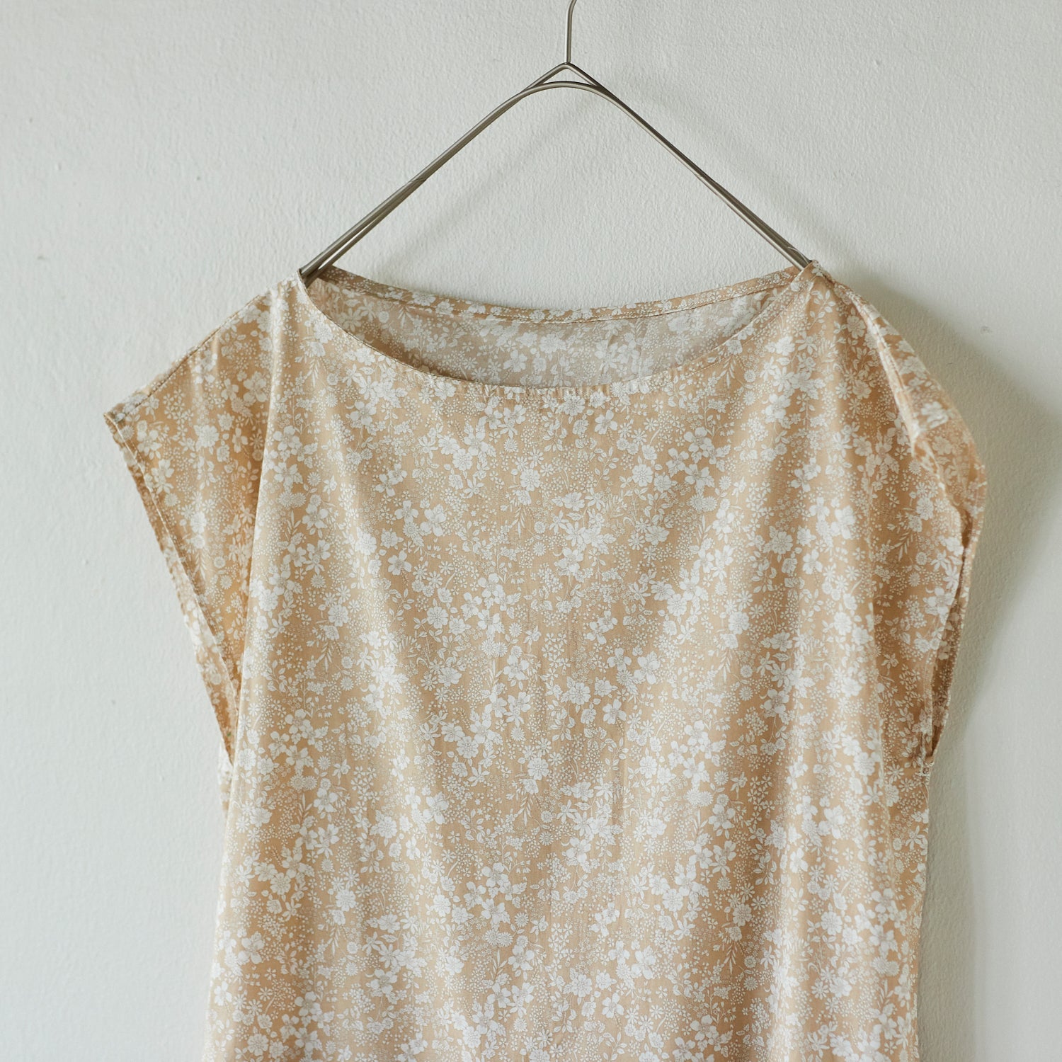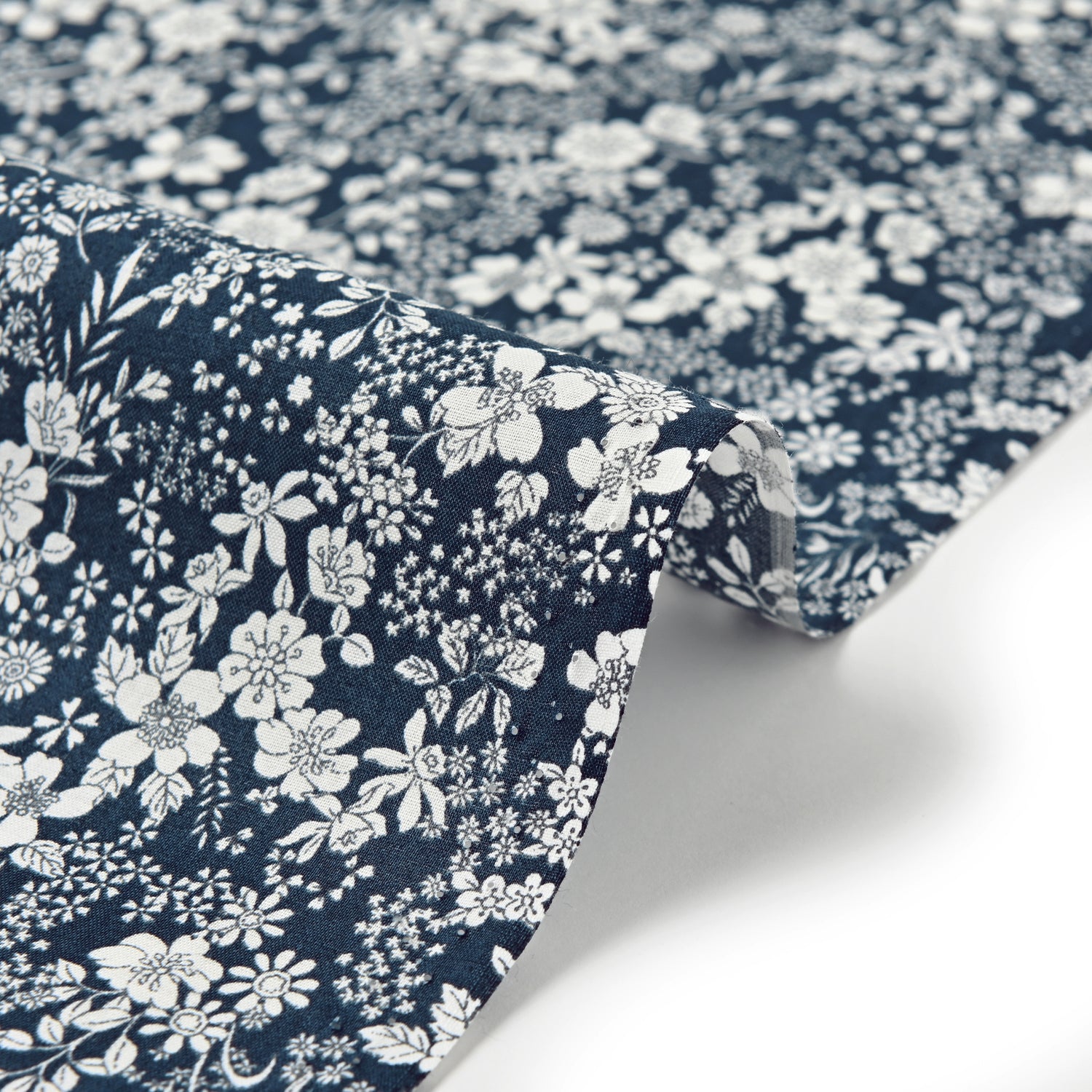 さらりとした薄手の綿ローン生地に小さな花や葉のモチーフを乗せたデザイン。