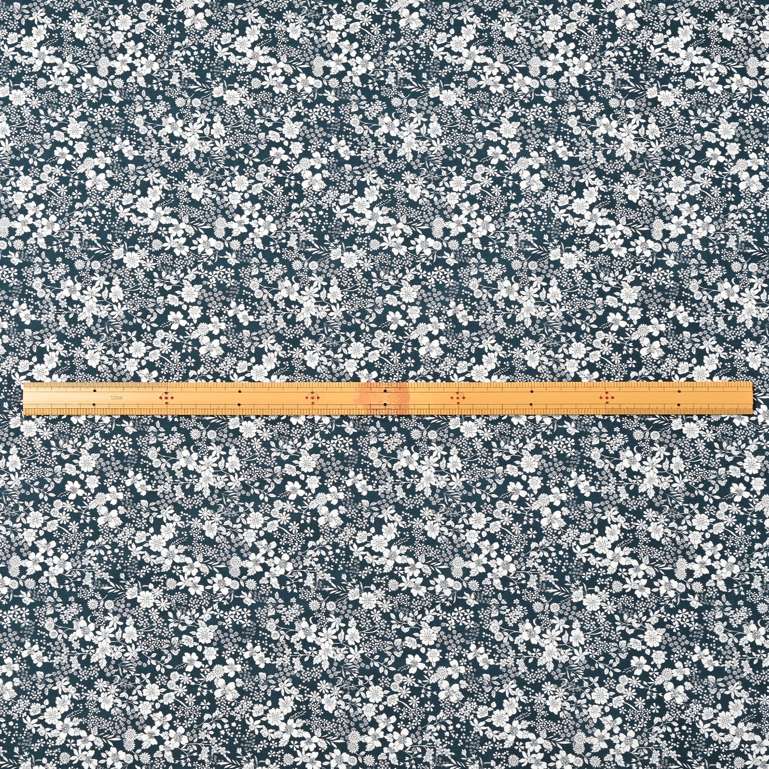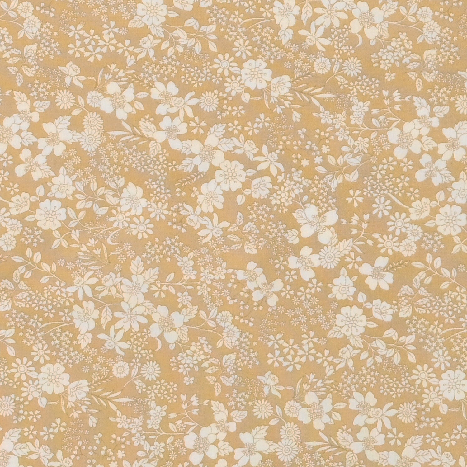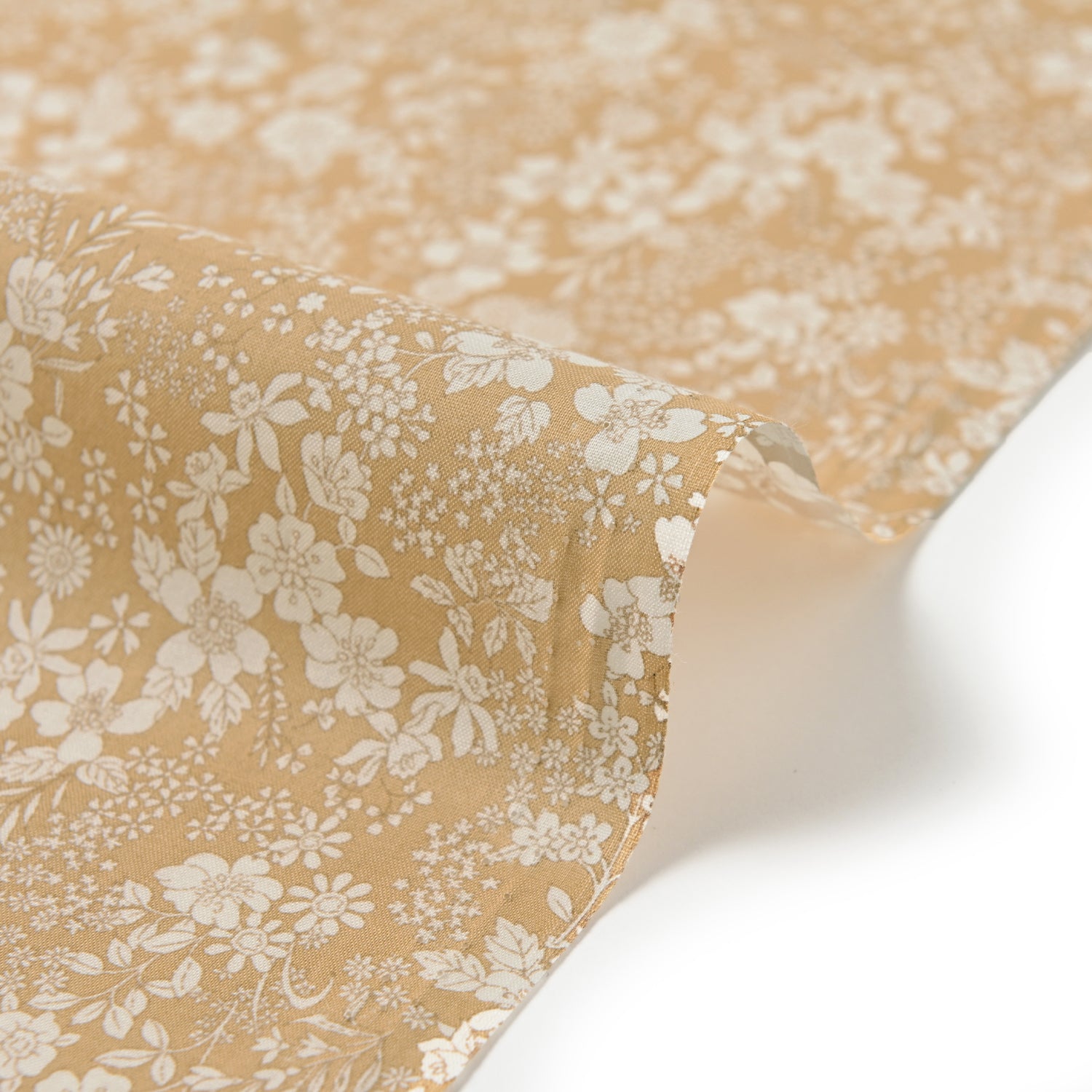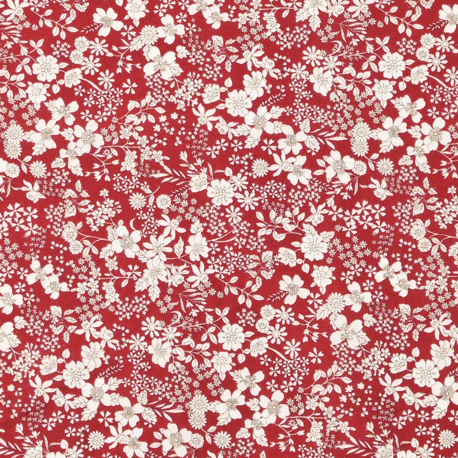 さらりとした薄手の綿ローン生地に小さな花や葉のモチーフを乗せたデザイン。