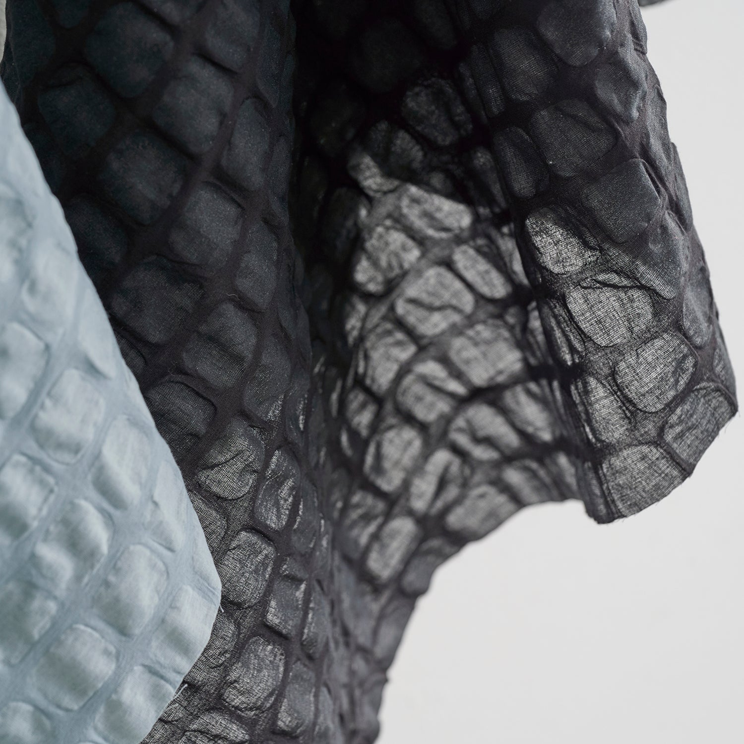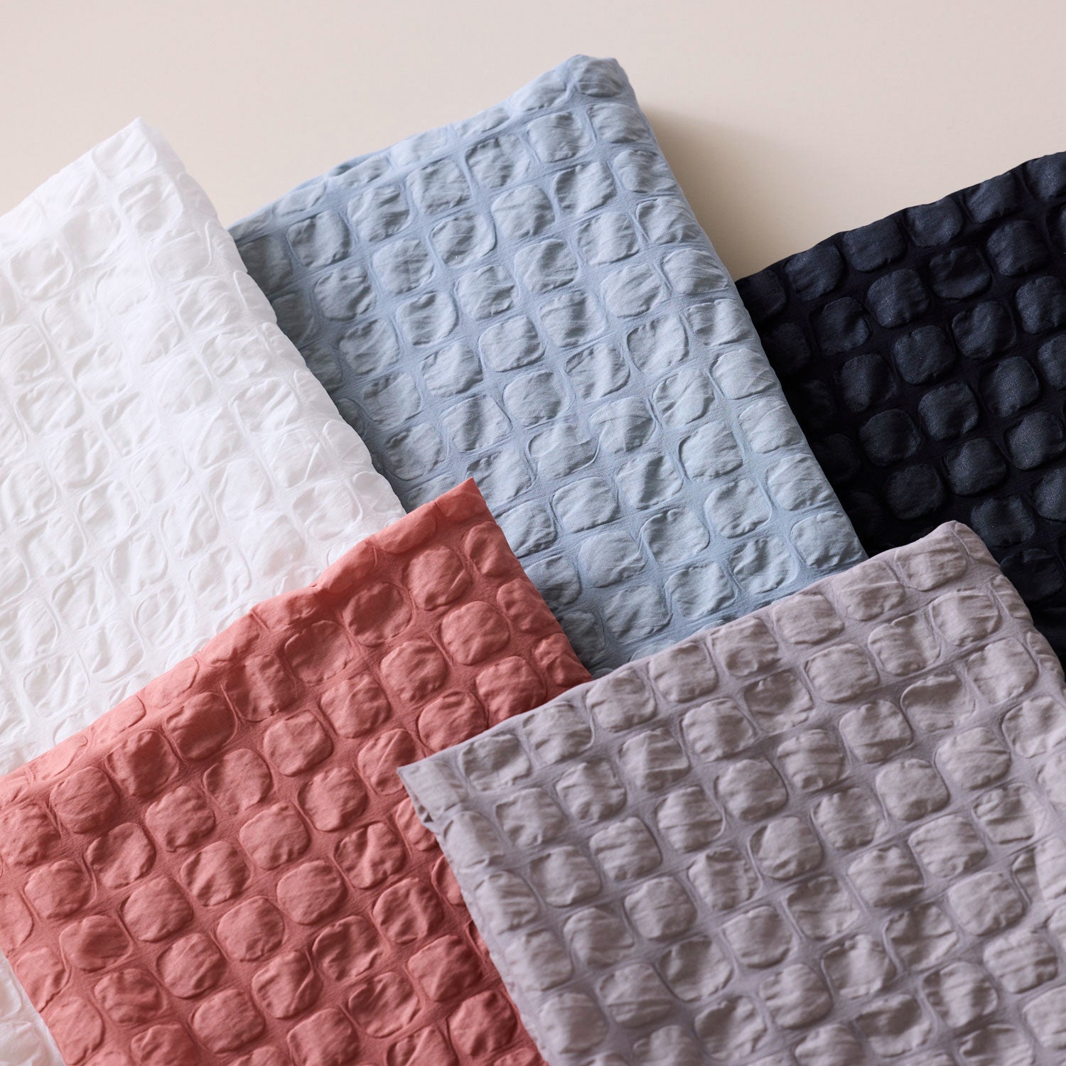 ワッフルのような塩縮加工が施された無地生地。