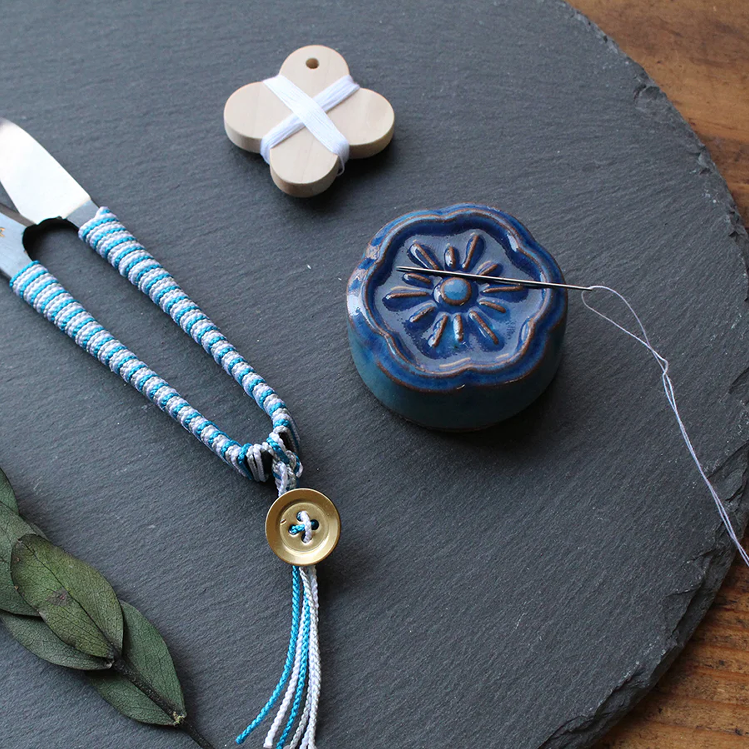 手仕事の時間に花を添える、嬉しい針磨きの機能付き針やすめに仕上がりました。