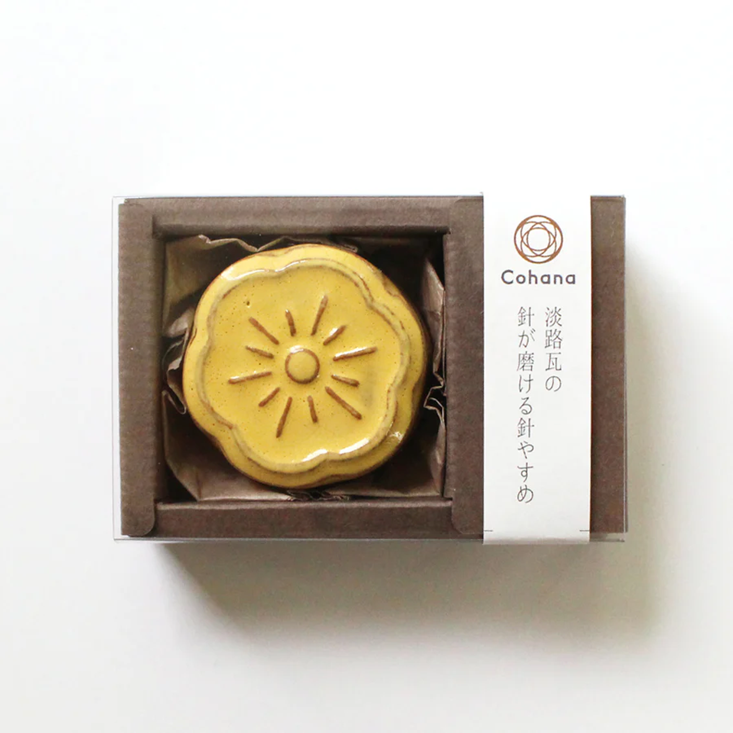 お花モチーフの淡路瓦の針やすめに針磨きの機能をプラス
