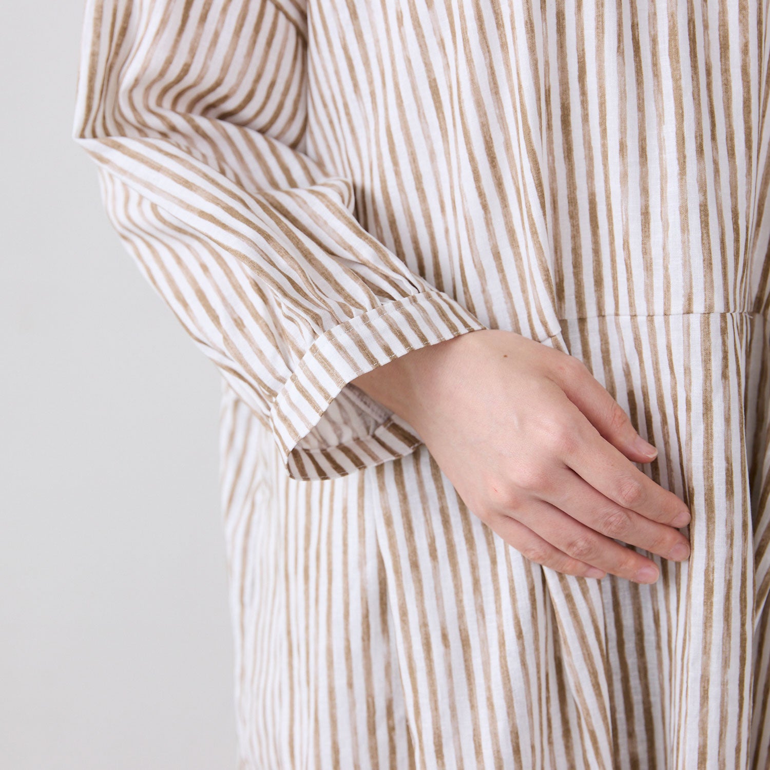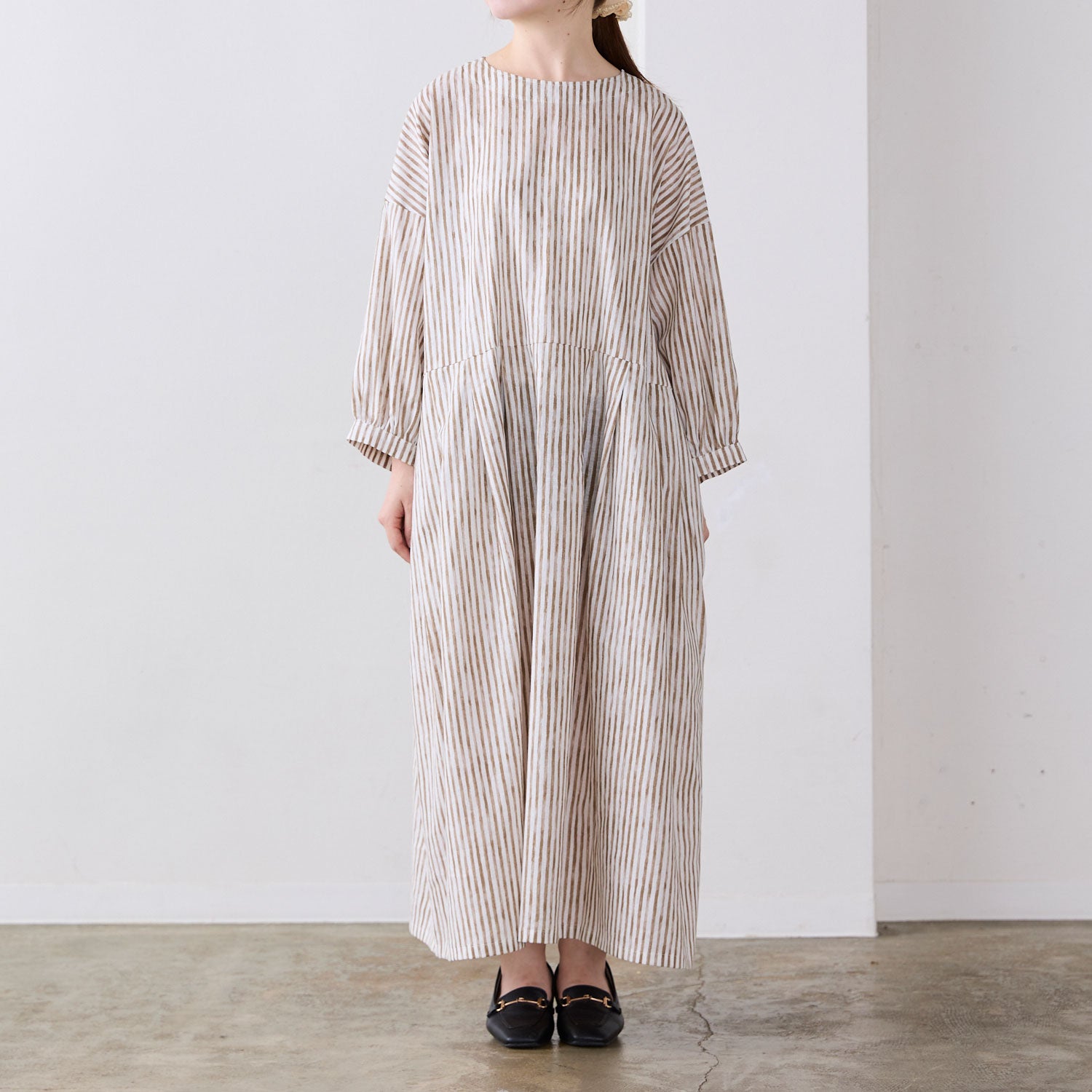 ワンピースの着丈を変更可能です。ボトムスと合わせることを想定して、丈を短くしてチュニックのように着て頂くこともできます。