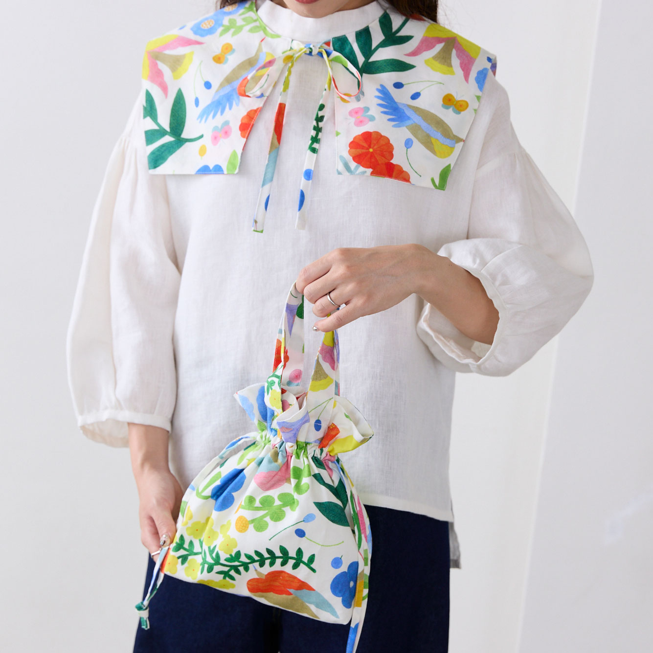 totoganashiさんとのコラボ生地をご予約頂いた方に「付け襟」と「巾着バッグ」のレシピをプレゼント!