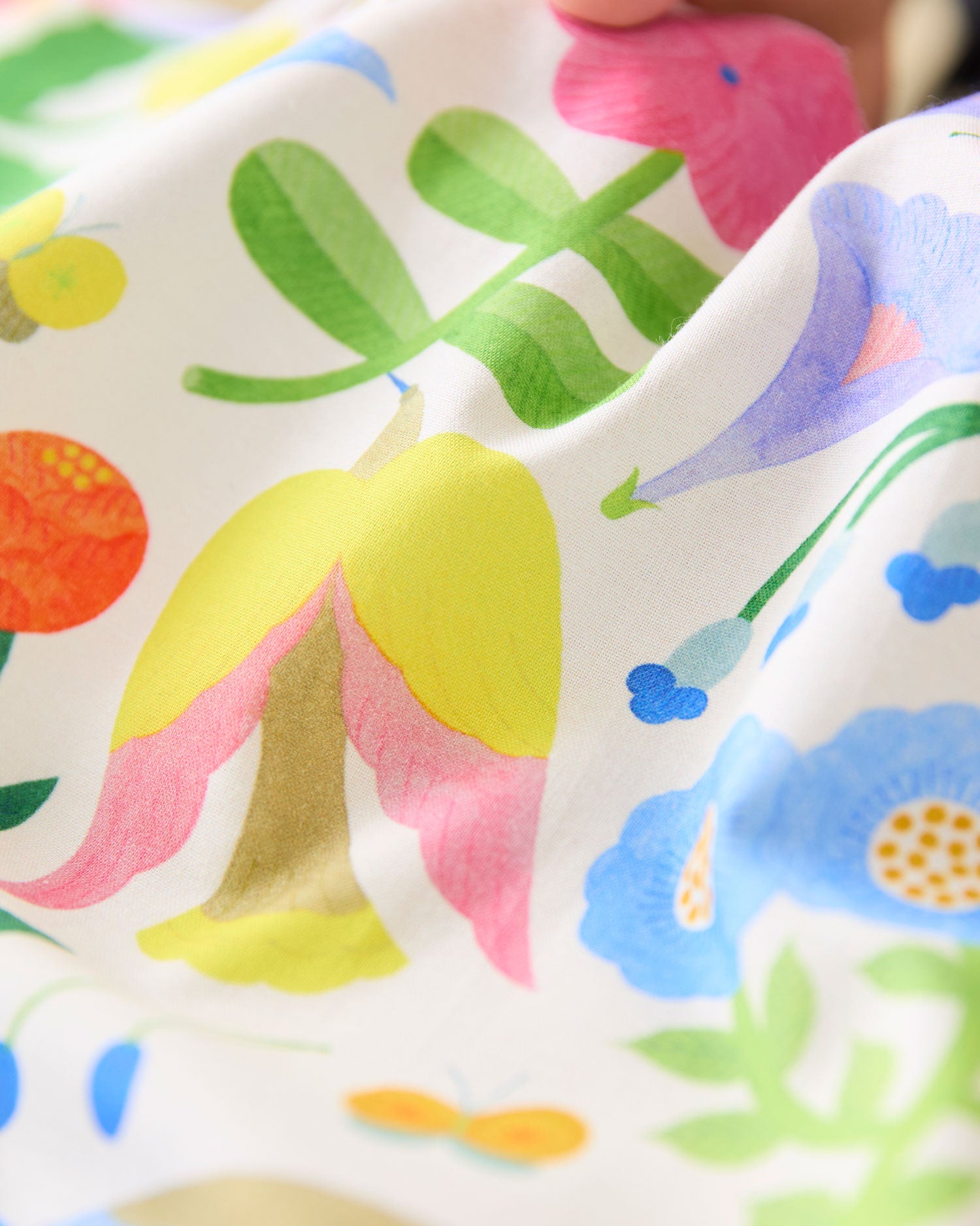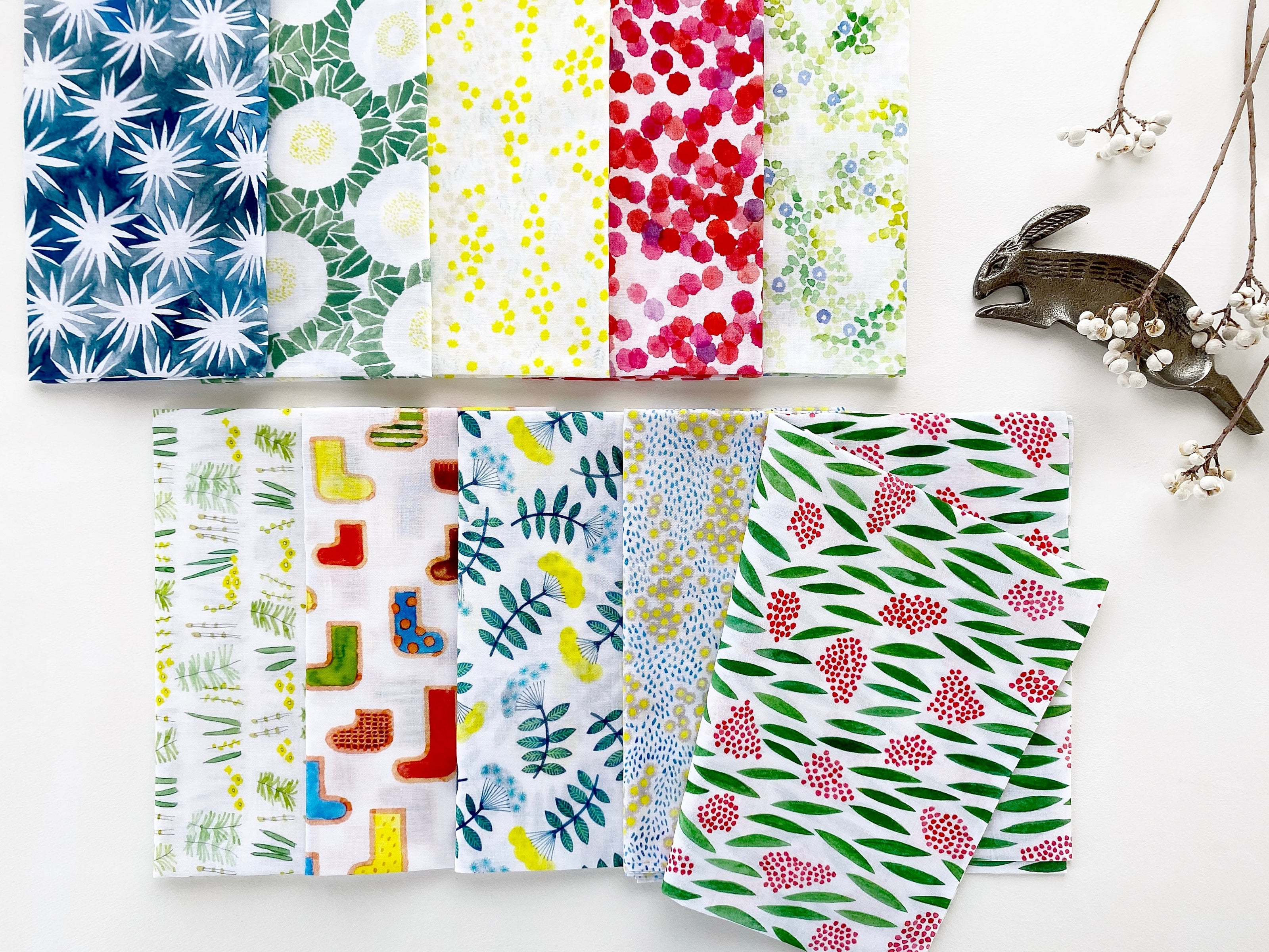 絵柄の中でそれぞれお気に入りの部分を見つけて頂いて、その部分をここぞという場所にレイアウトして、洋服やかばんをつくる、といったような、生地を扱う人ならではのお愉しみというか、作り手の方の想いがより輝くような絵柄になっていたらいいなと思います。