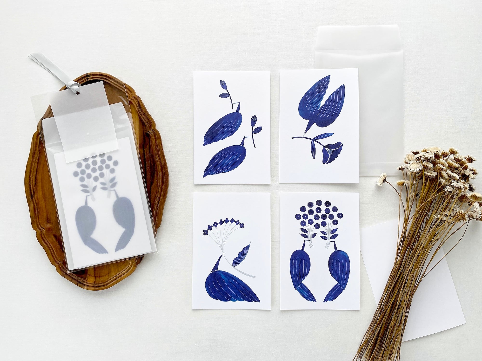 植物や鳥をモチーフにした作品を中心に、原画の販売や、テキスタイルアイテム・ペーパーアイテムの制作・販売を展示会やオンラインストアで行っている。