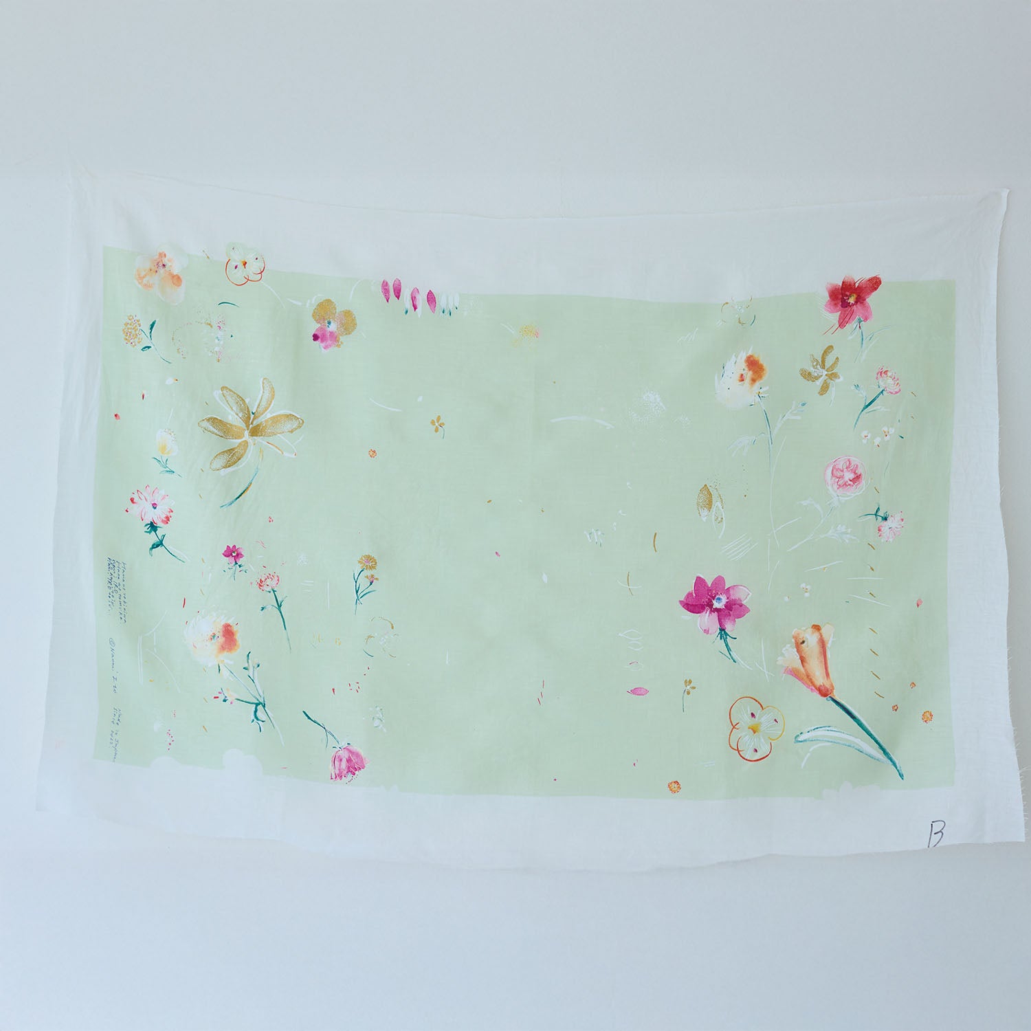 滑らかで美しい貴重なリネンに、上品な色合いと共に絵画のような優しい風景が広がります。