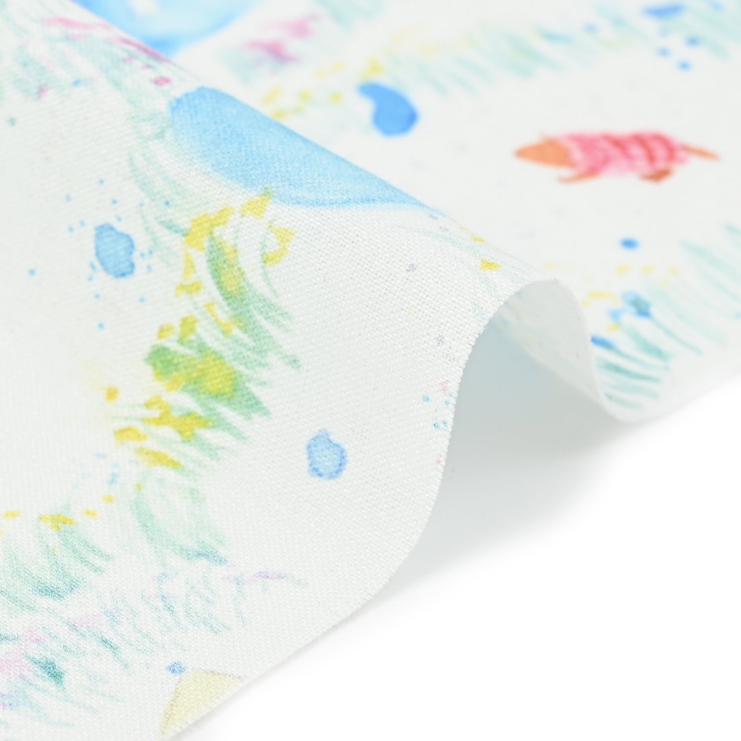 やや薄手の綿シーチング生地は、色と柄を活かしたワンピースやスカートなどのお洋服をはじめエコバッグやポーチなど小物にもおすすめです。