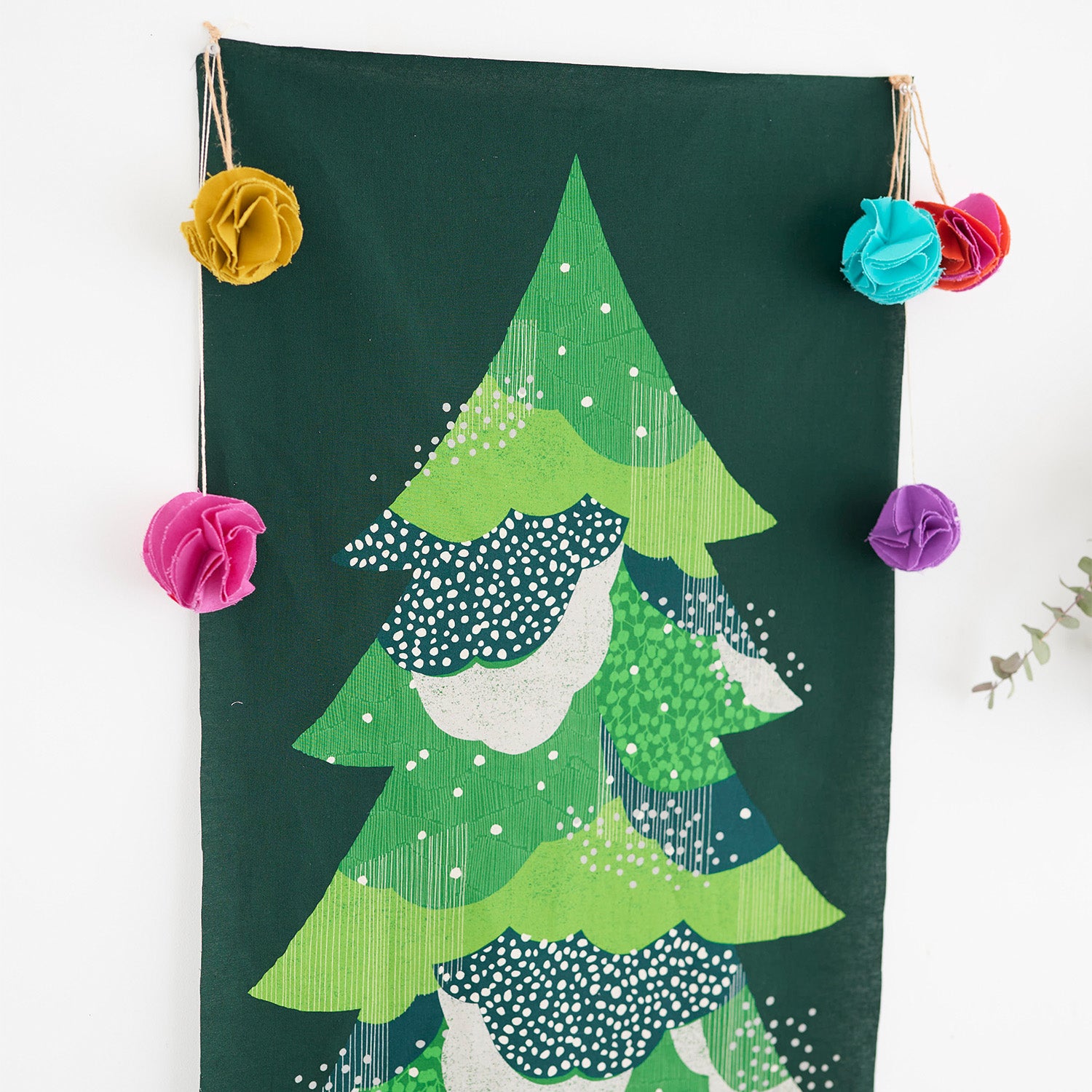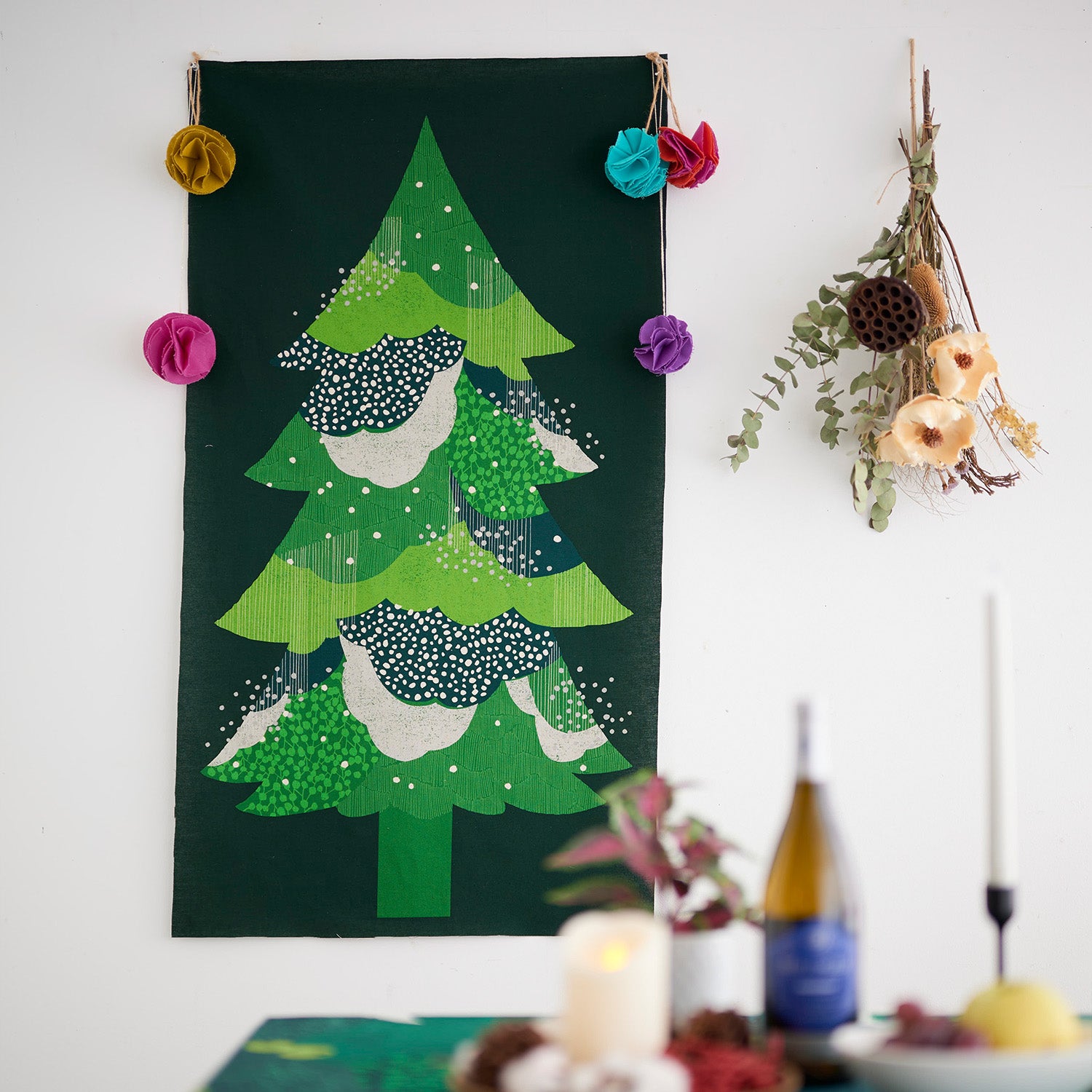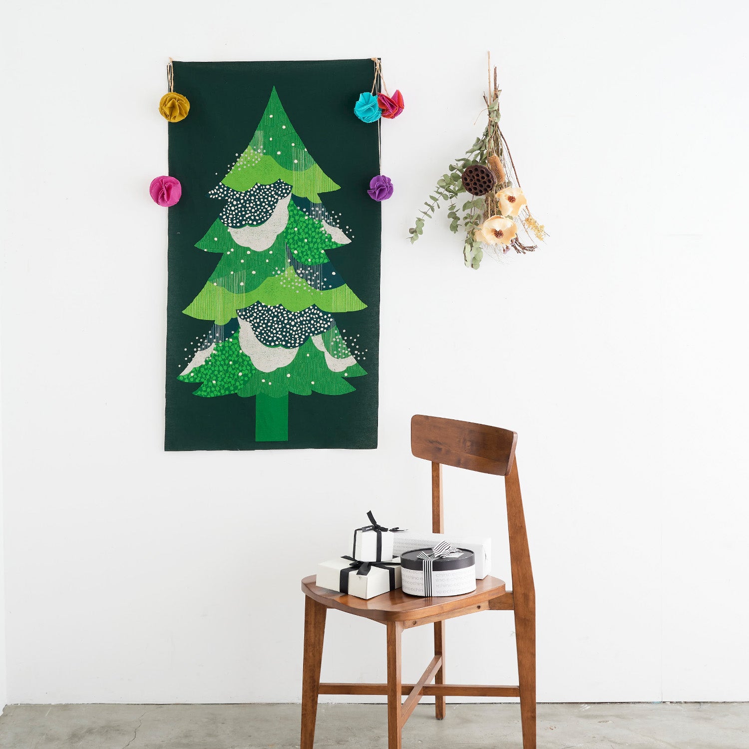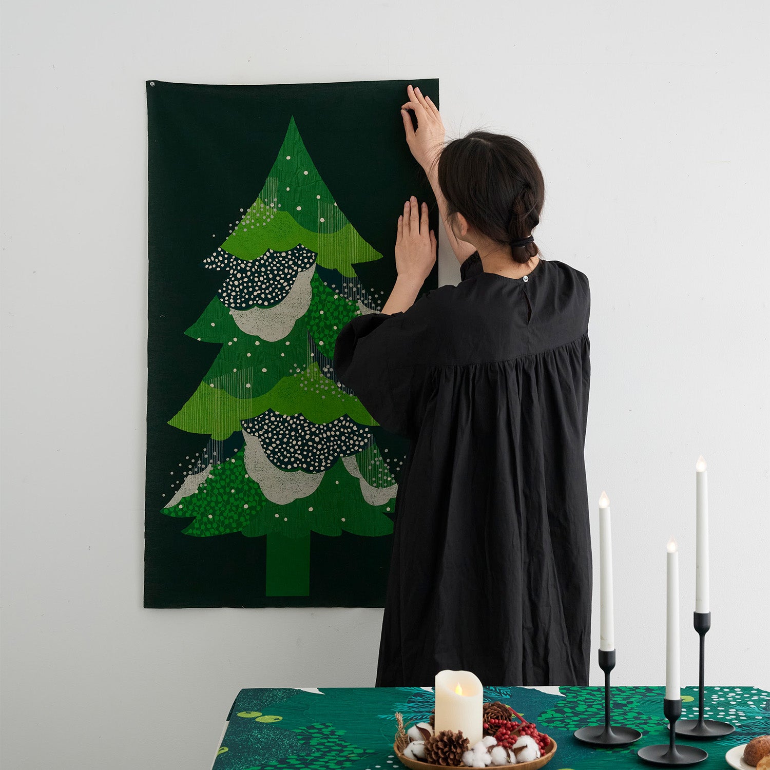 タペストリーとして壁に貼ってお気に入りのオーナメントと飾ってみたり、テーブルクロスにしてホリデー気分を味わうのも