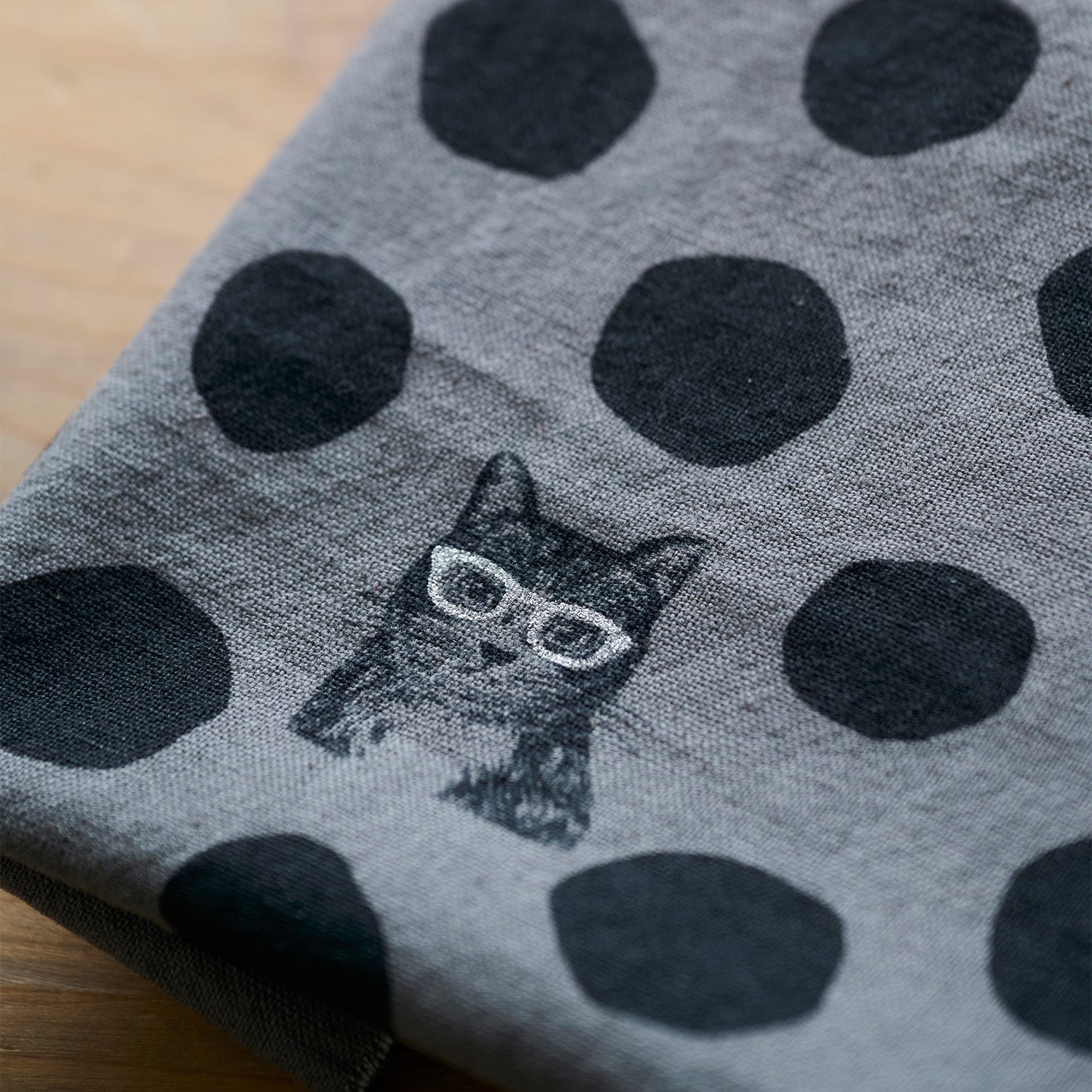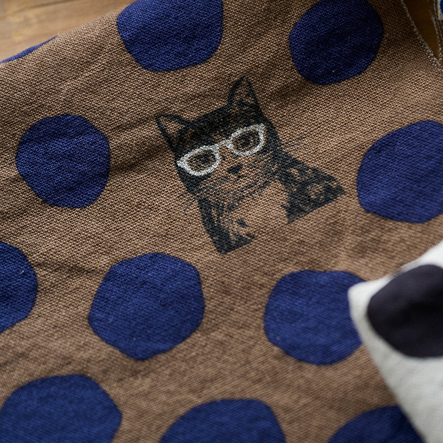 柄の中にはメガネをかけた猫がアクセントで潜んでいます。
