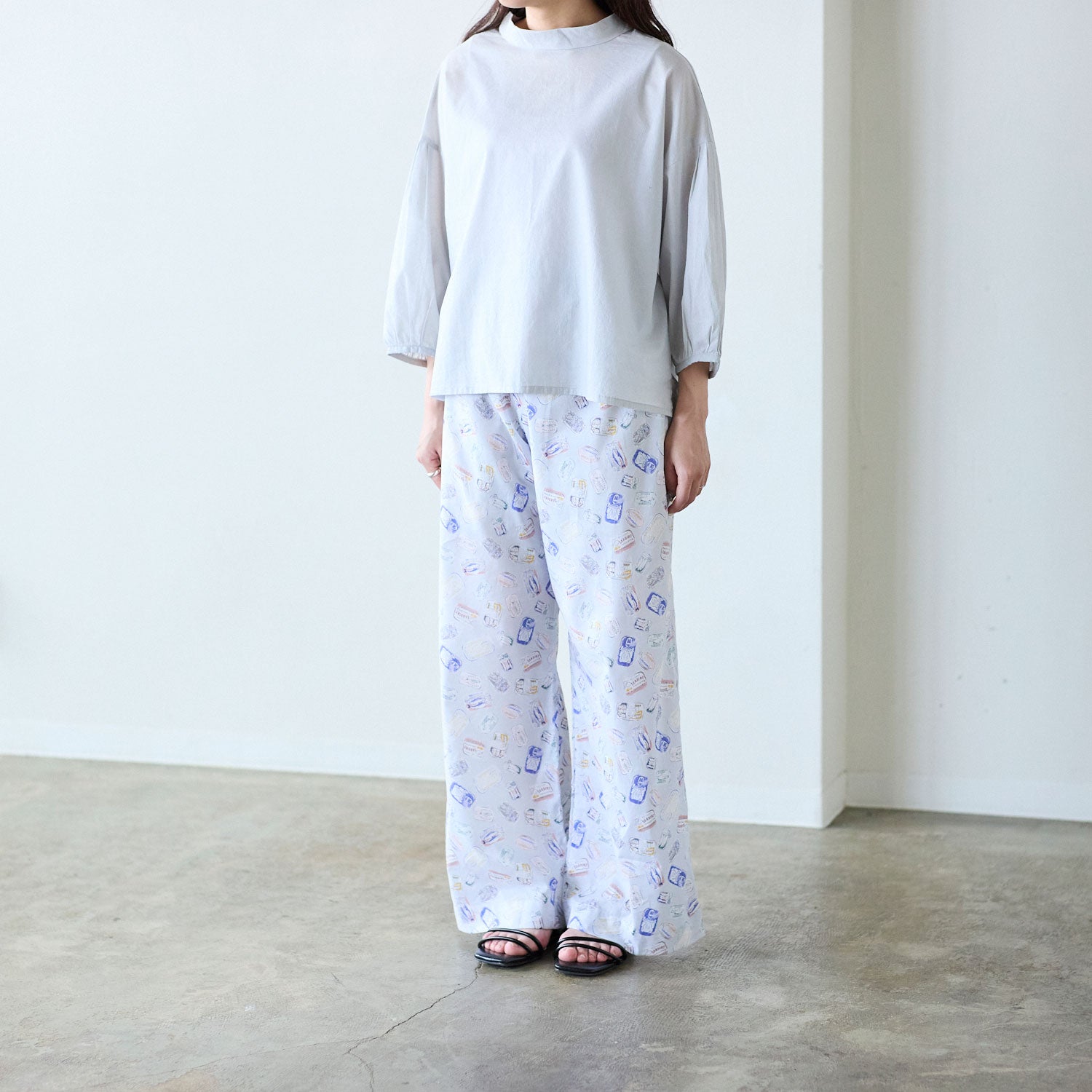 *生地の特性上、丸い玉のような綿カスや天然素材のフシなど凹凸がある生地のため、綿カスなどがとれた箇所のプリントが一部ポツポツと白くなっている箇所が含まれる場合がございますが、素材による特性のため不良ではございませんので予めご了承下さい。素材そのままのナチュラルな雰囲気をお楽しみください。