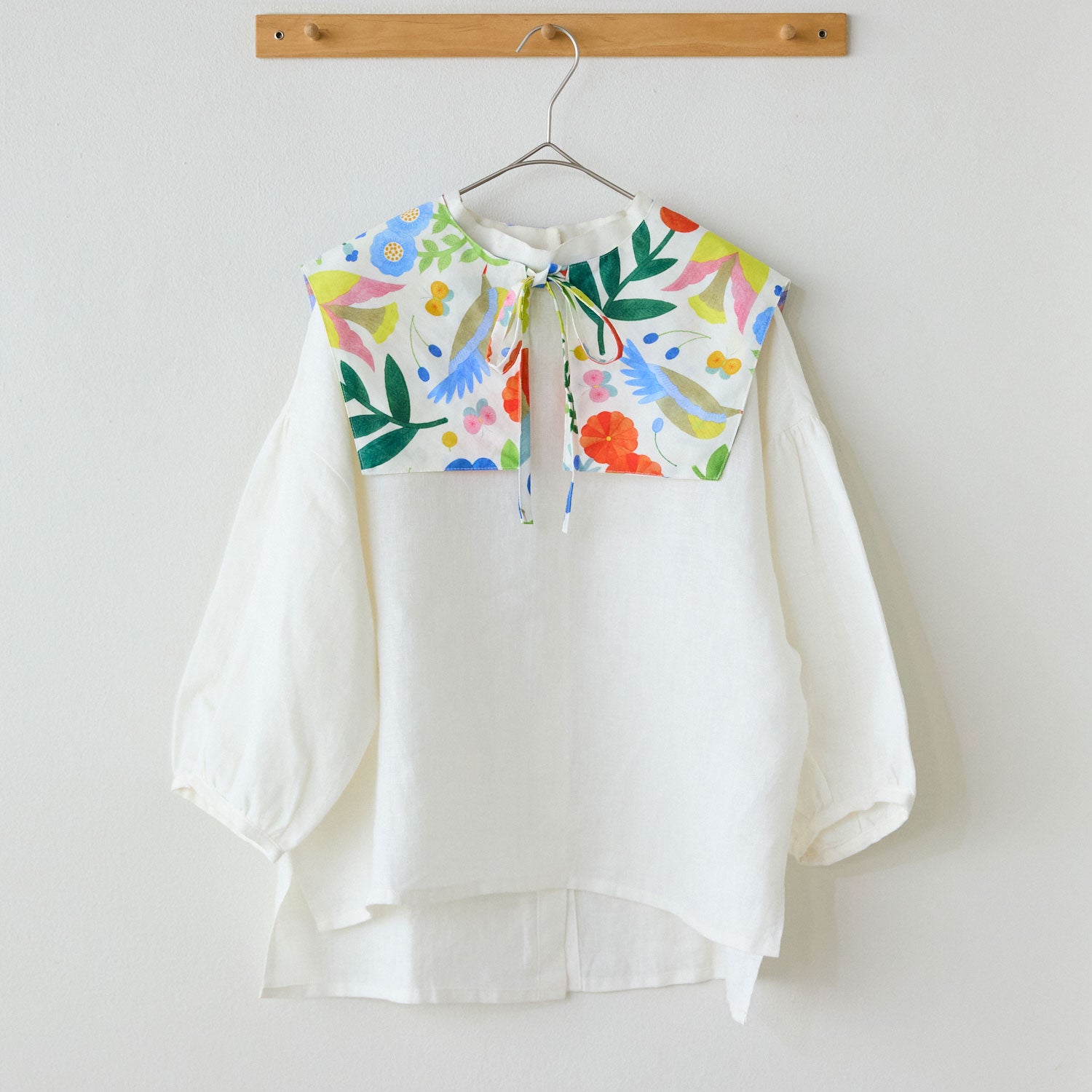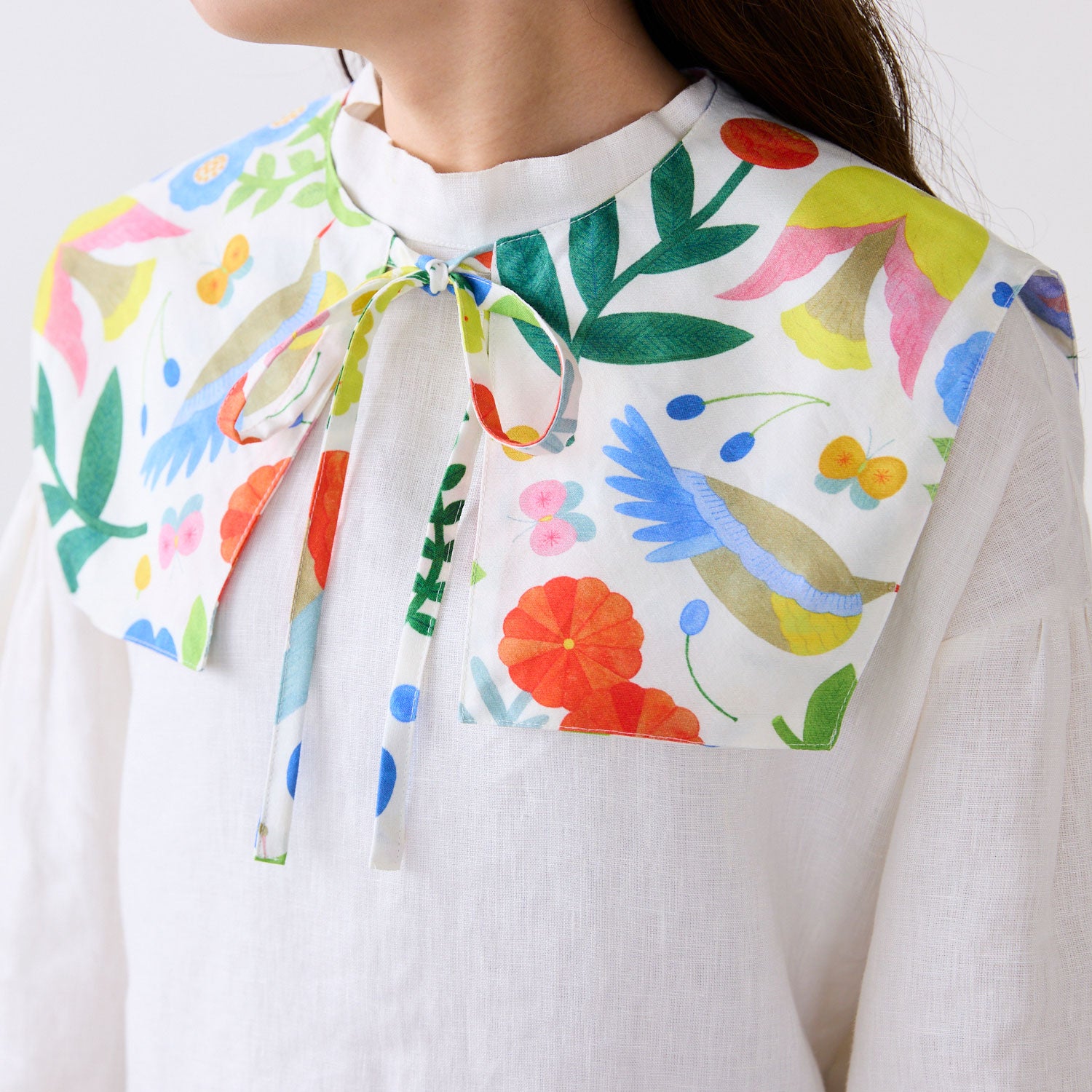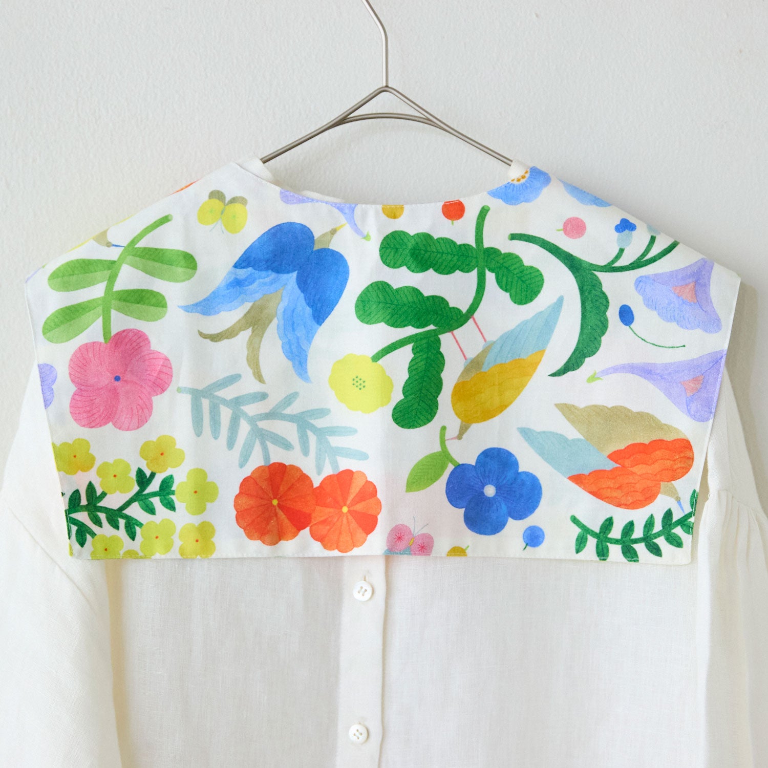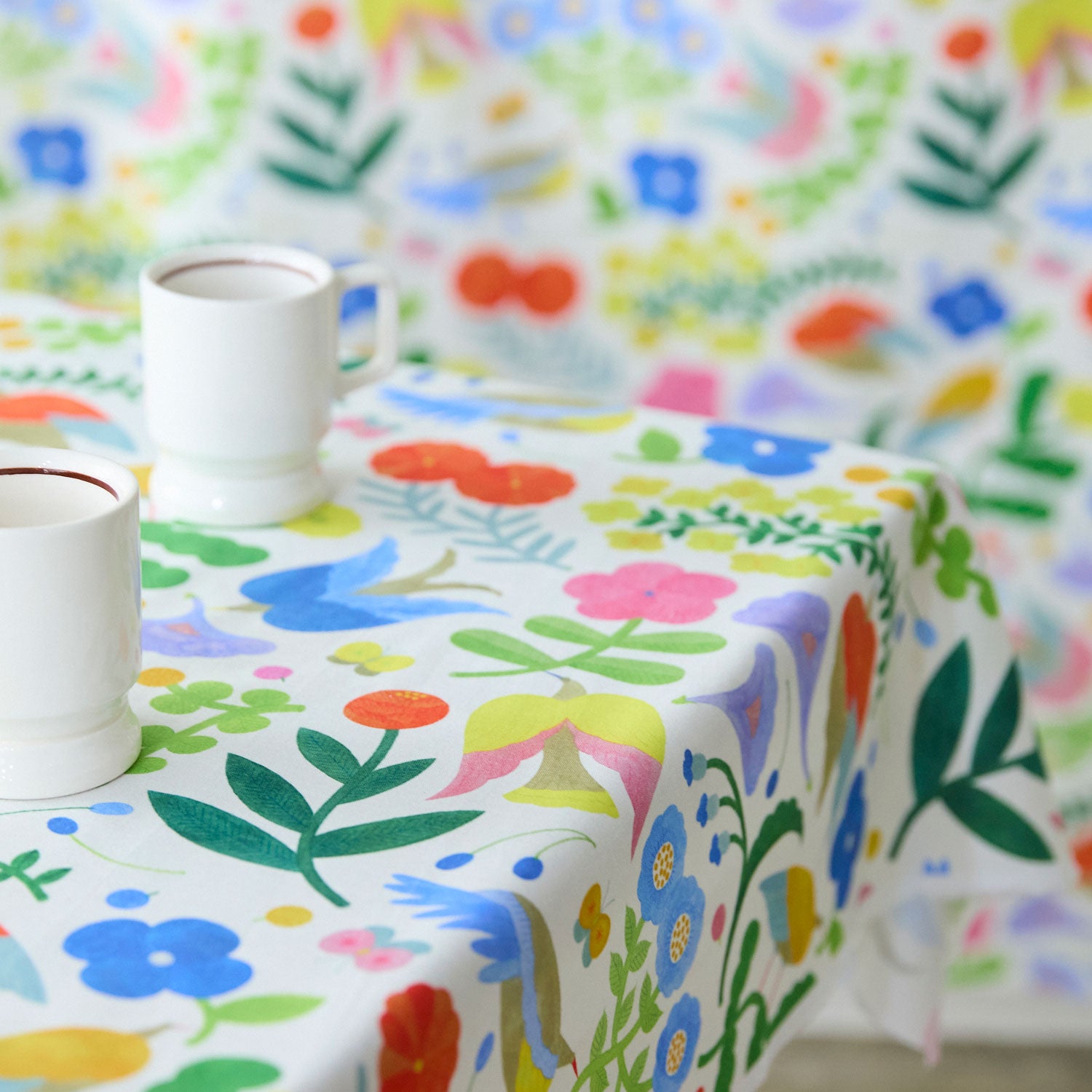 色とりどりのカラフルなお花と鳥たちが描かれた生地は、見ているだけで気分を盛り上げてくれます。