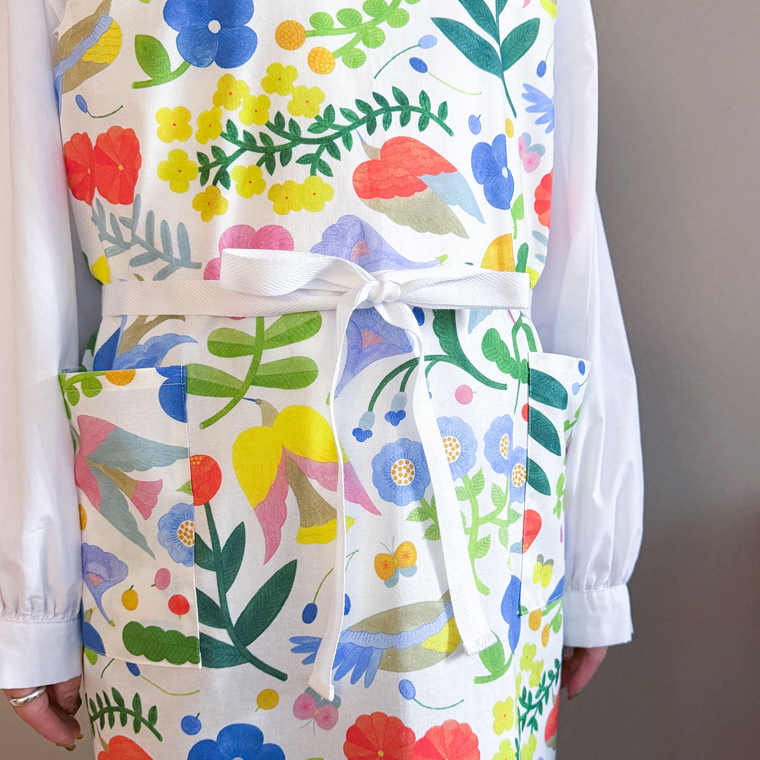 ポケットが付いたシンプルで使いやすいエプロン。