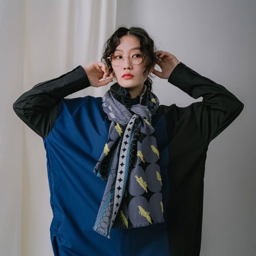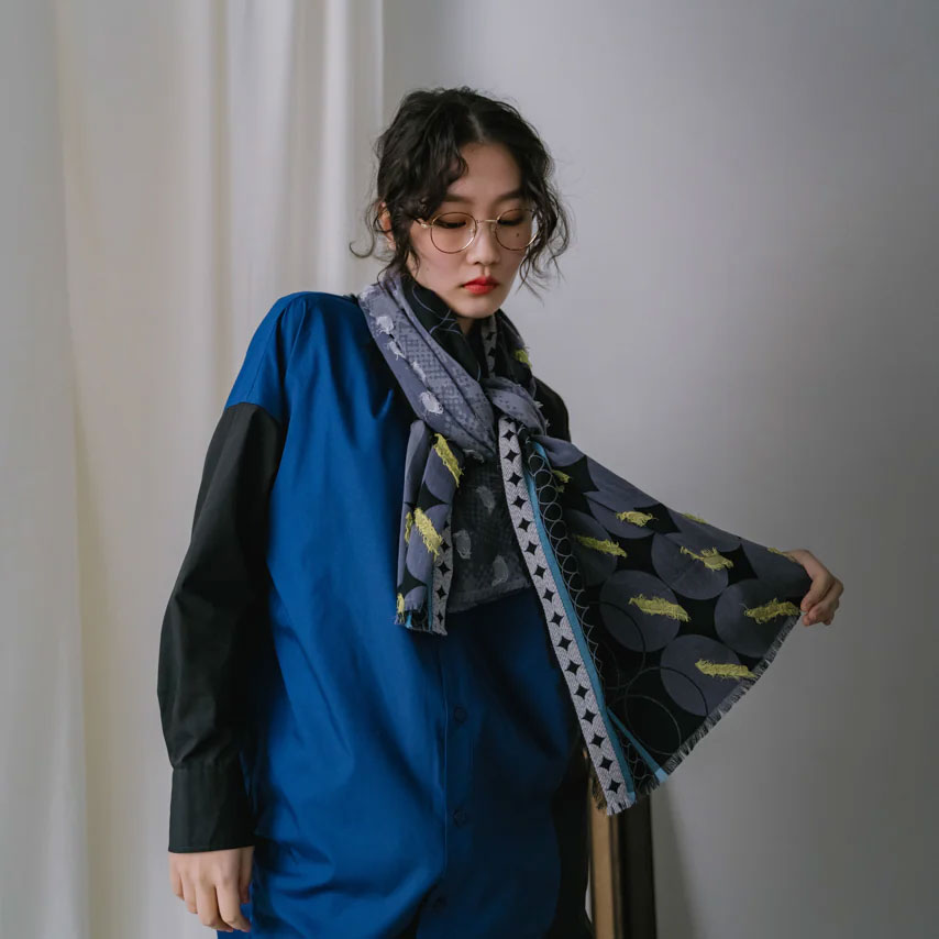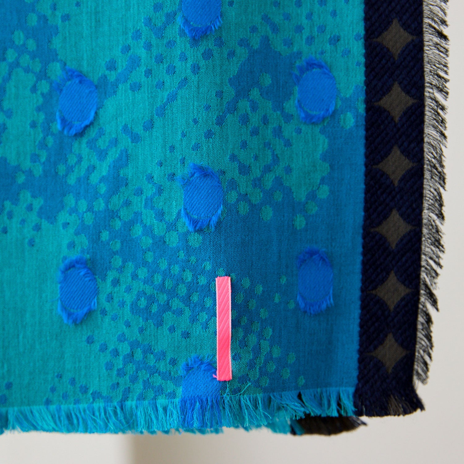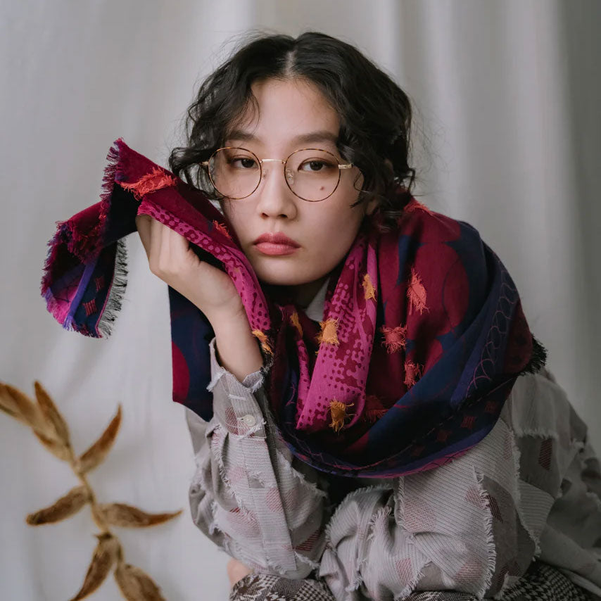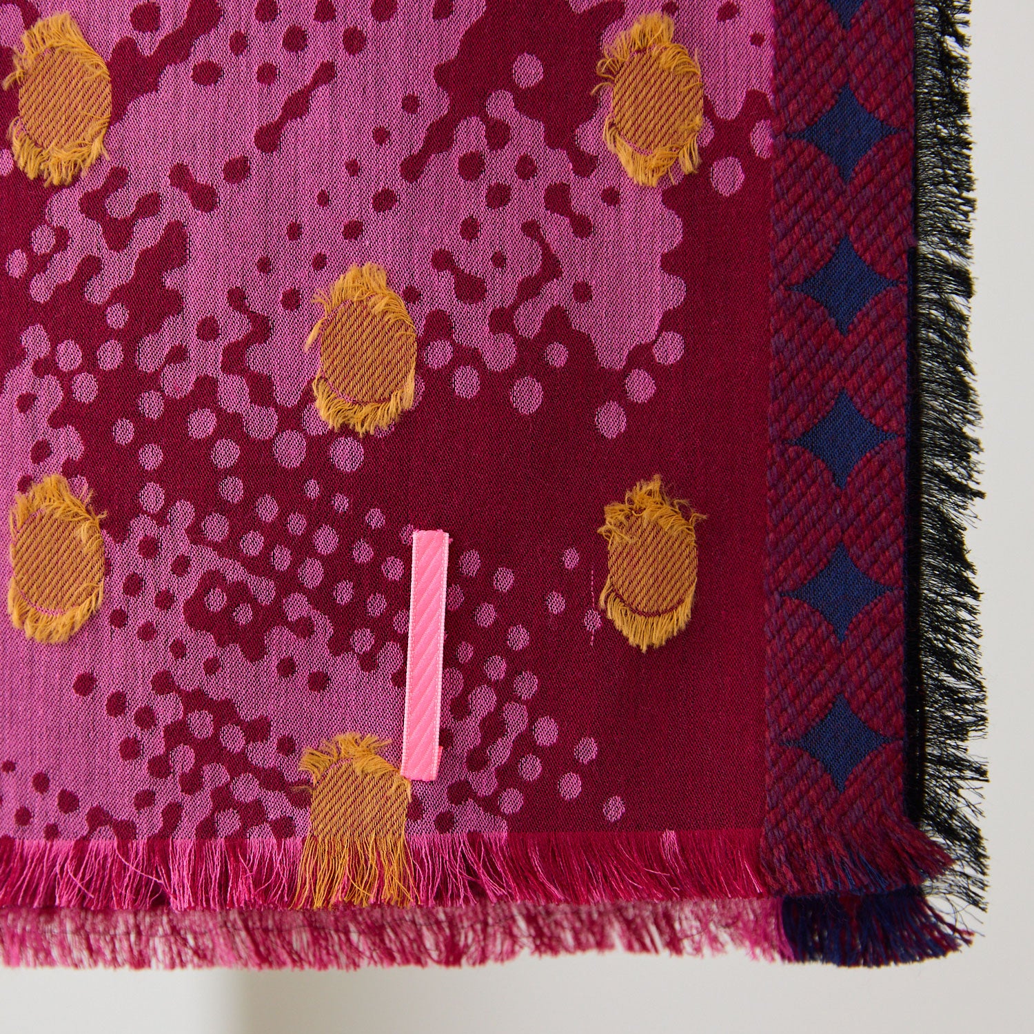 POLSらしいタテ糸とヨコ糸から生まれる色の重なりと、ヨコ糸をカットすることで生まれるフリンジの立体的なテクスチャをぜひお楽しみください。