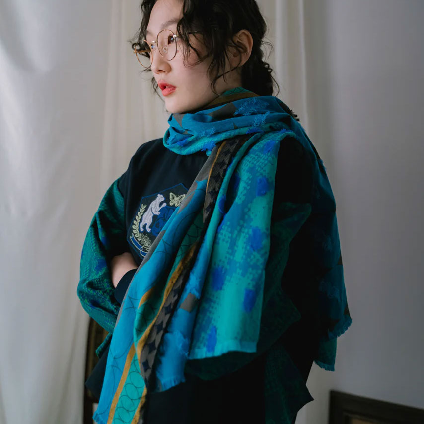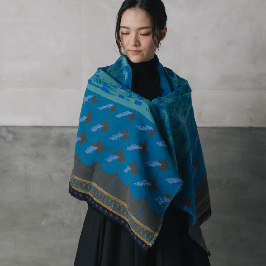 上質で品良い光沢を持つキュプラ素材と肌触りの柔らかなコットンを組み合わせたストールは、シーズン問わずお使いいただけます。
