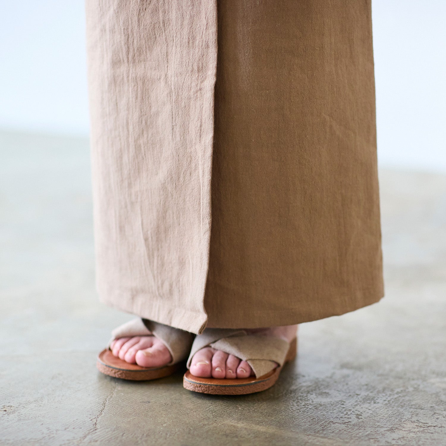 綿麻キャンバス生地に洗いざらし風のしわ加工を施しました。