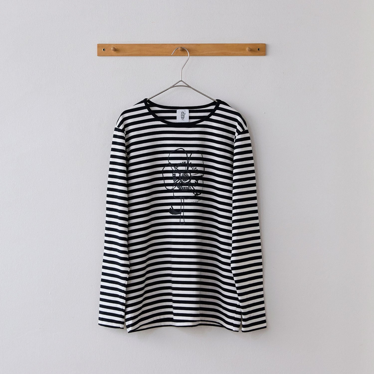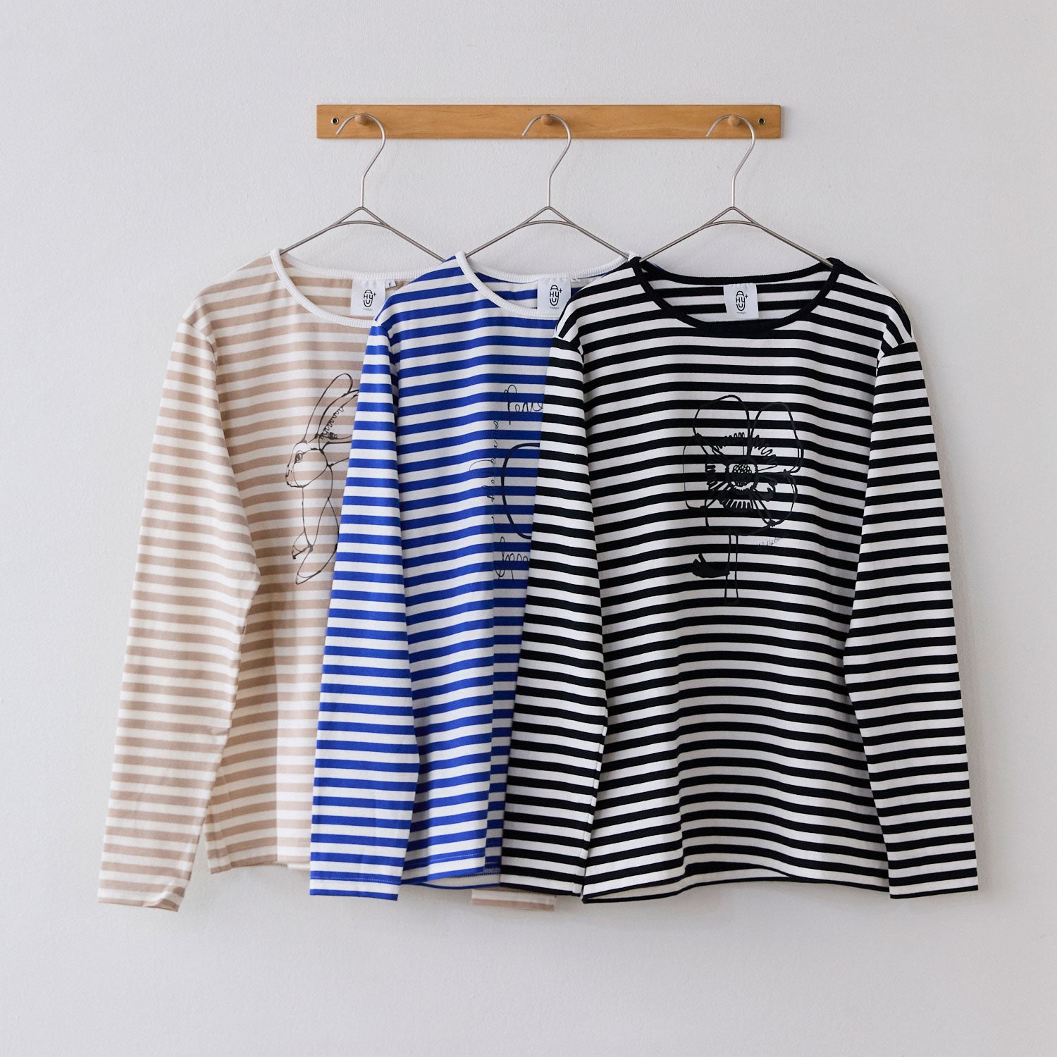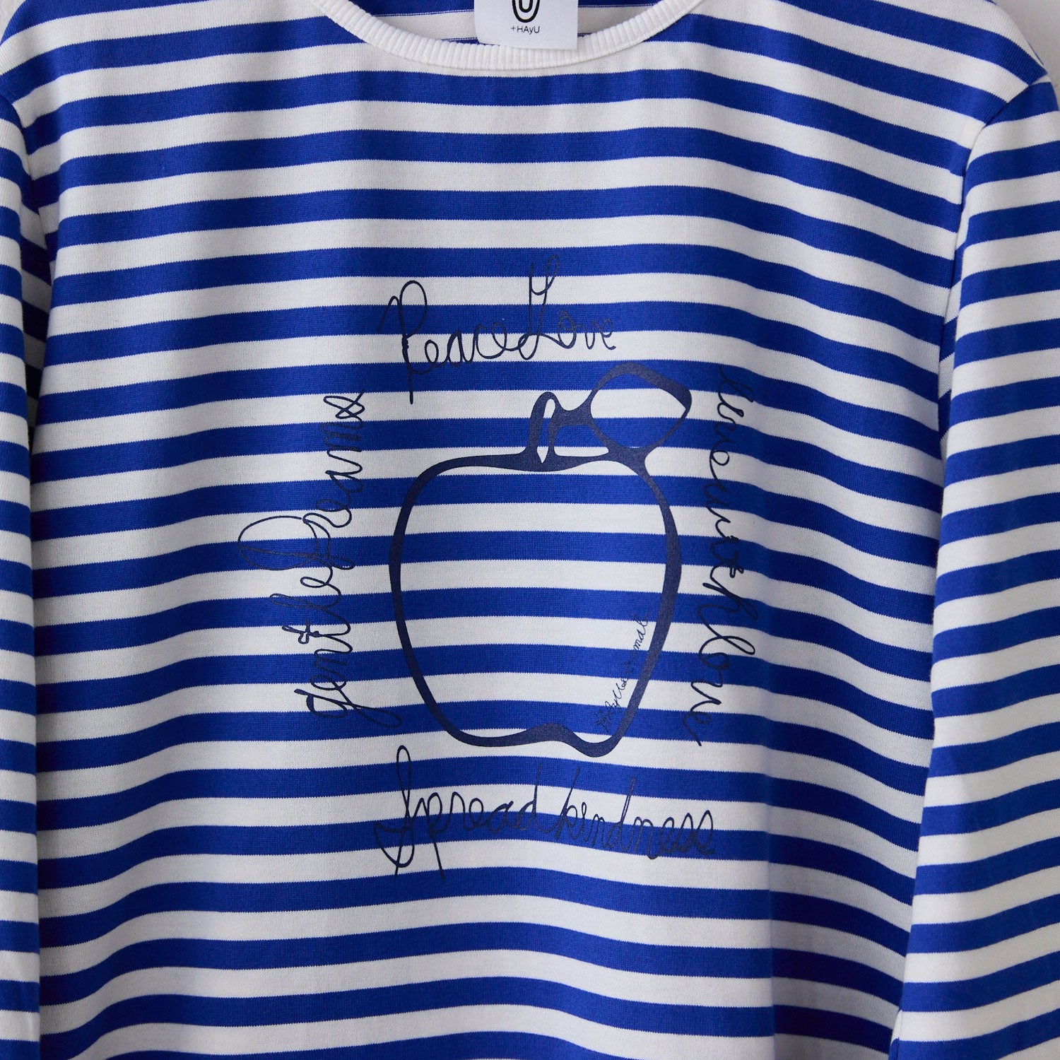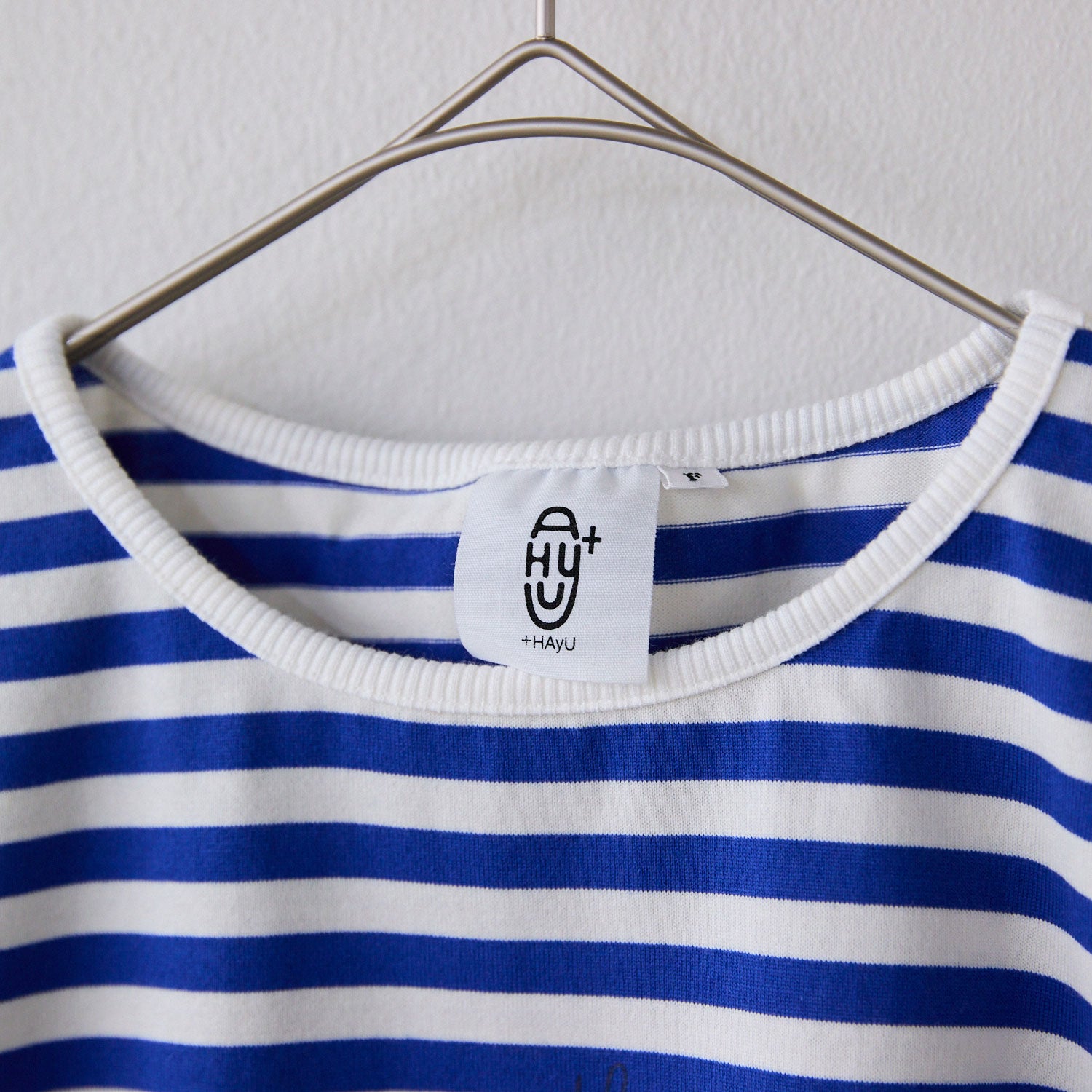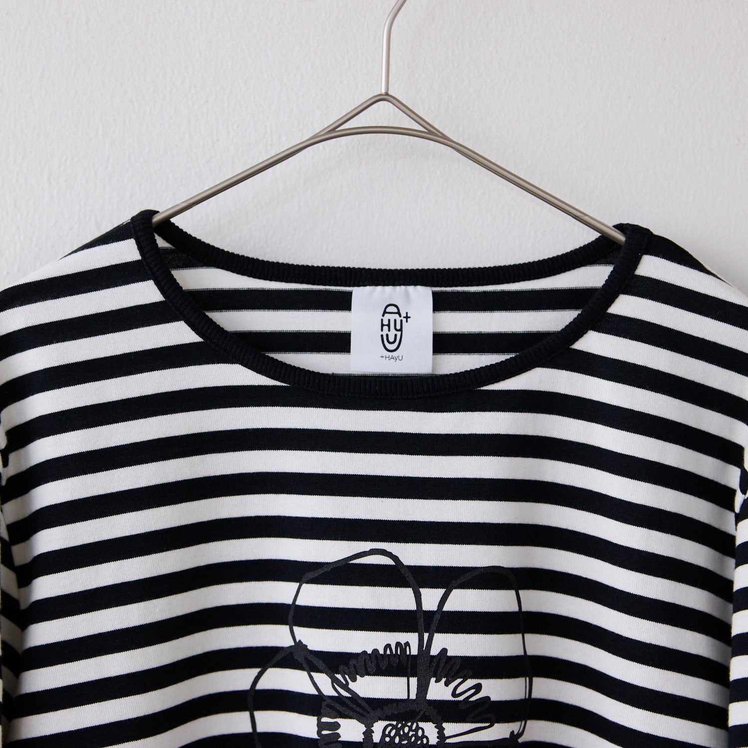 スタンダードなボーダー柄に+HAyUのアートをあしらった、着回しやすいロンTです。