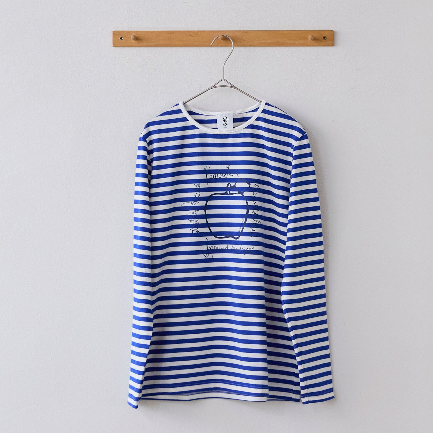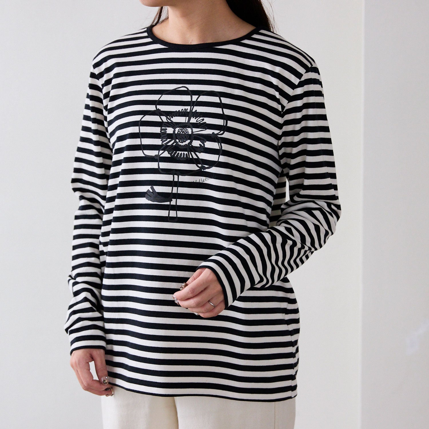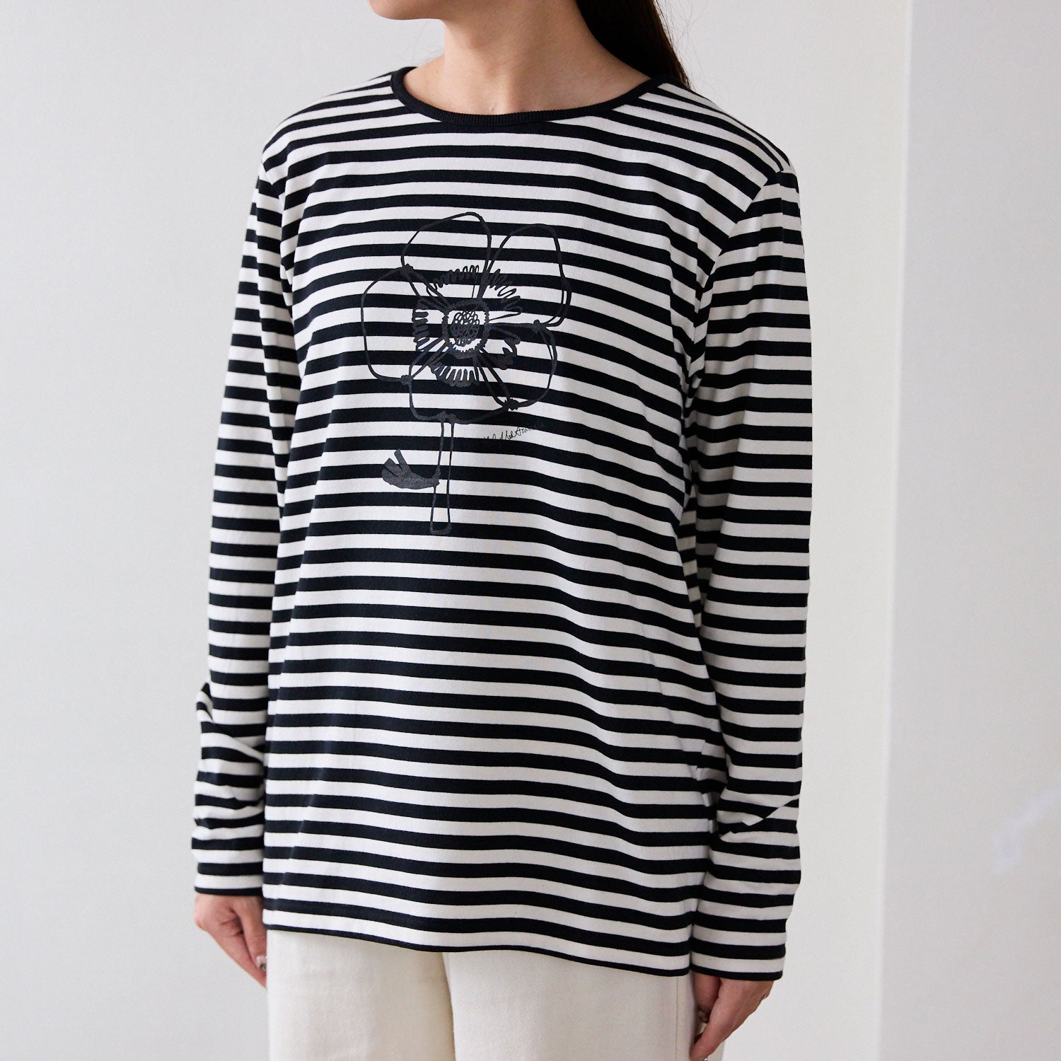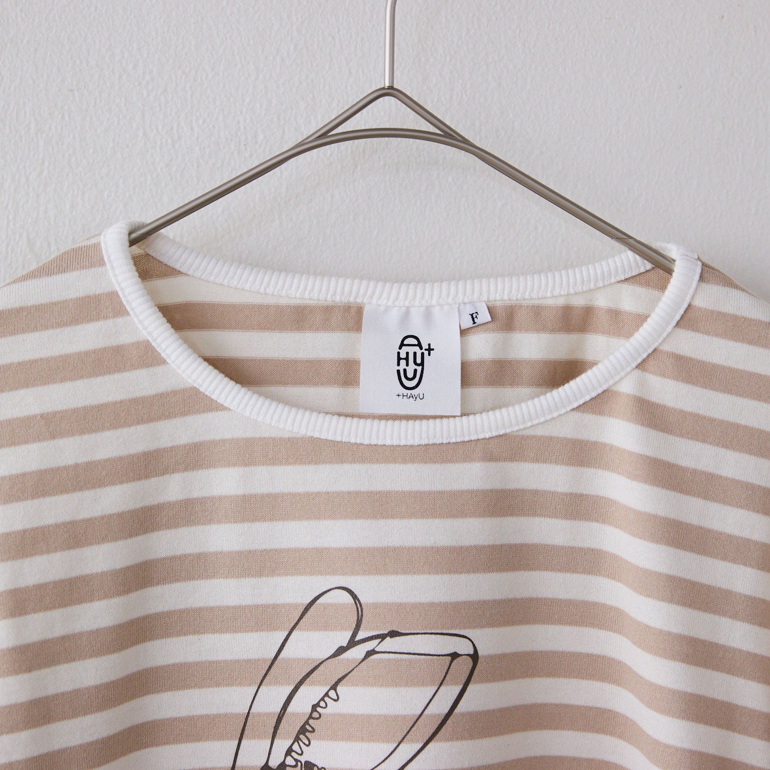 スタンダードなボーダー柄に+HAyUのアートをあしらった、着回しやすいロンTです。