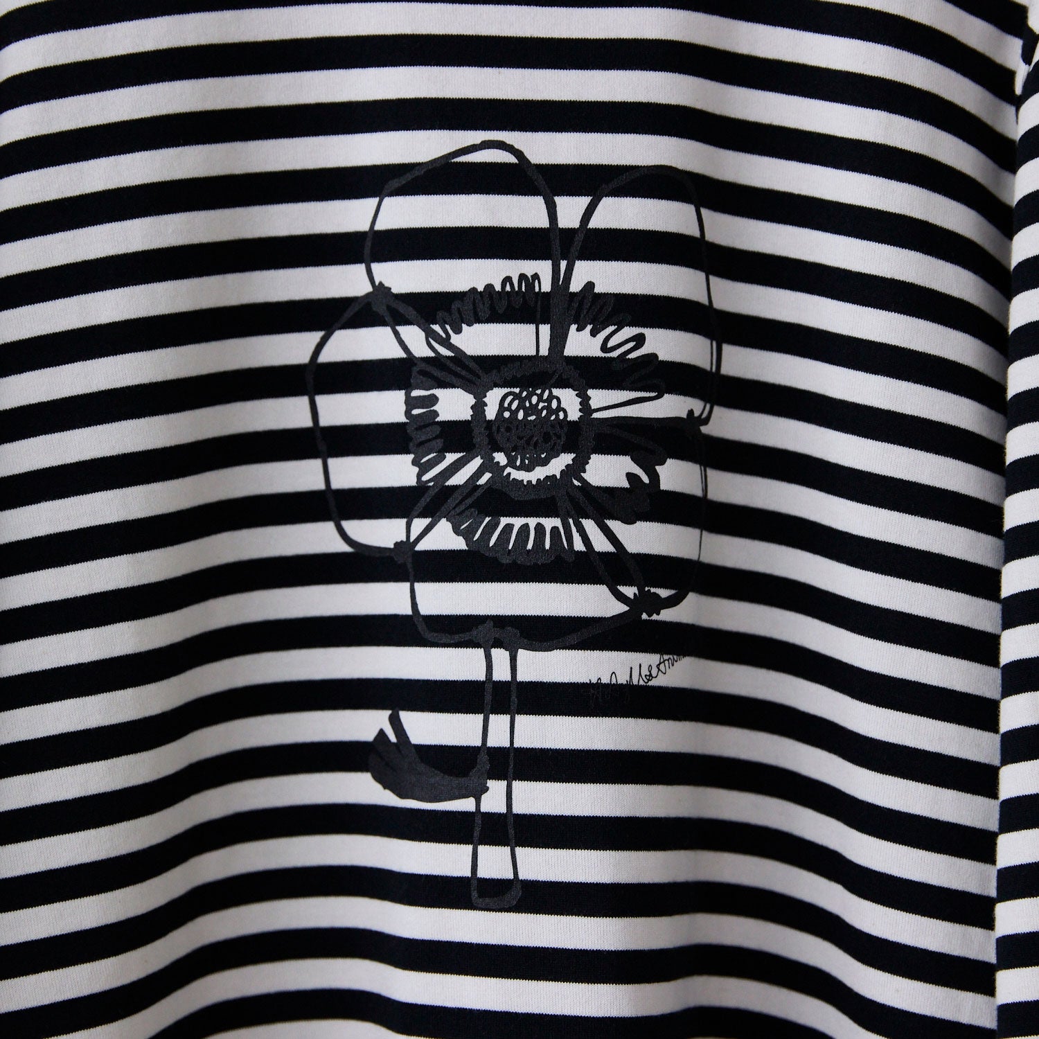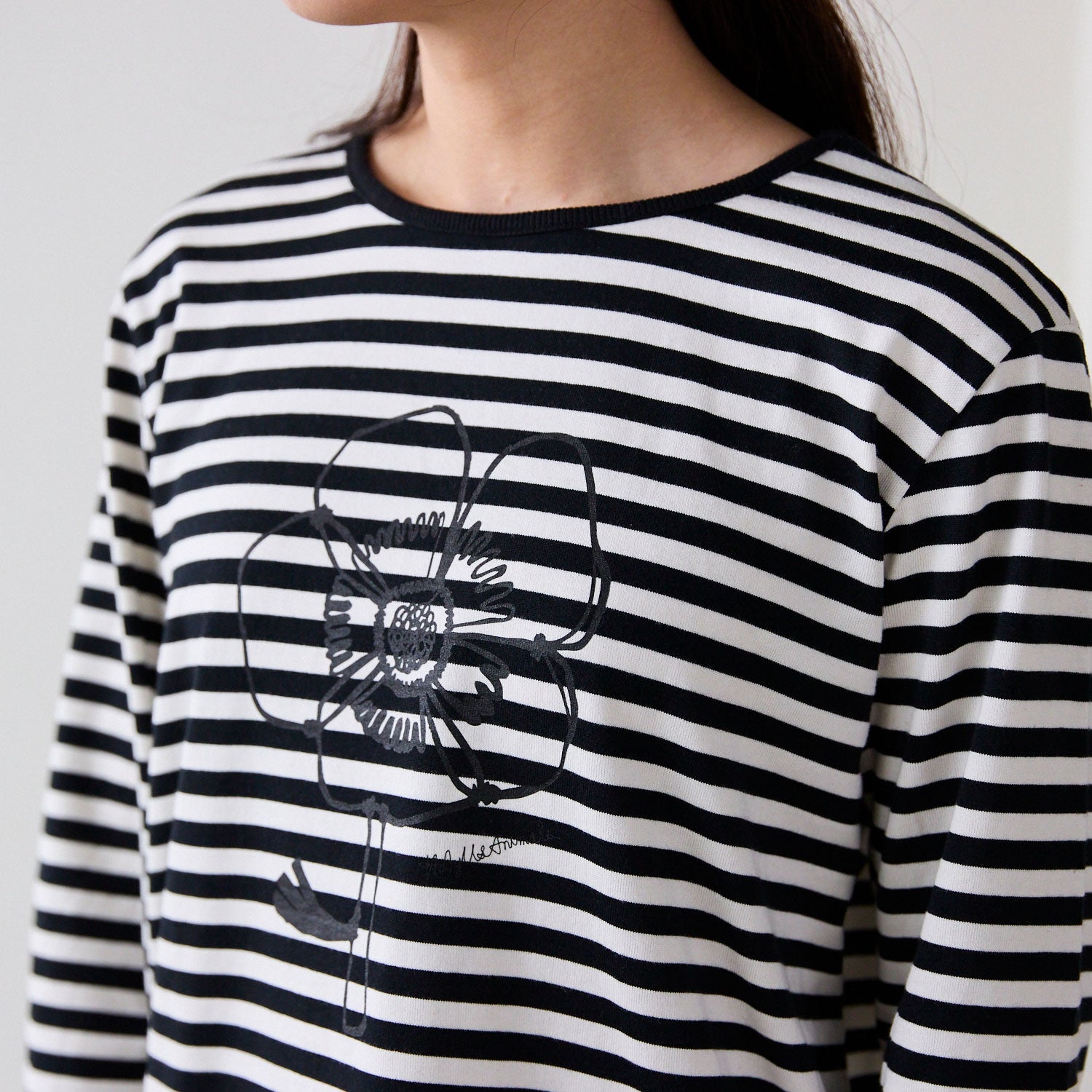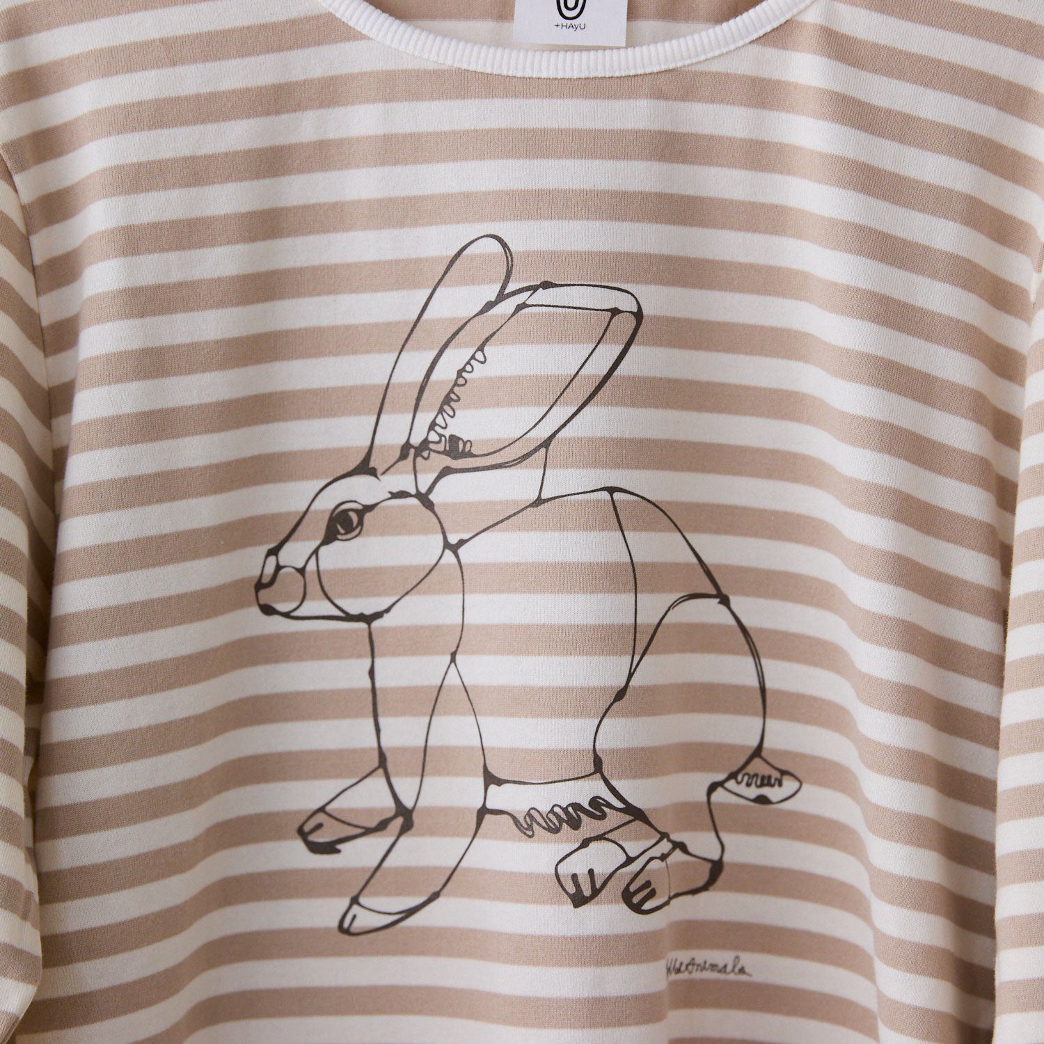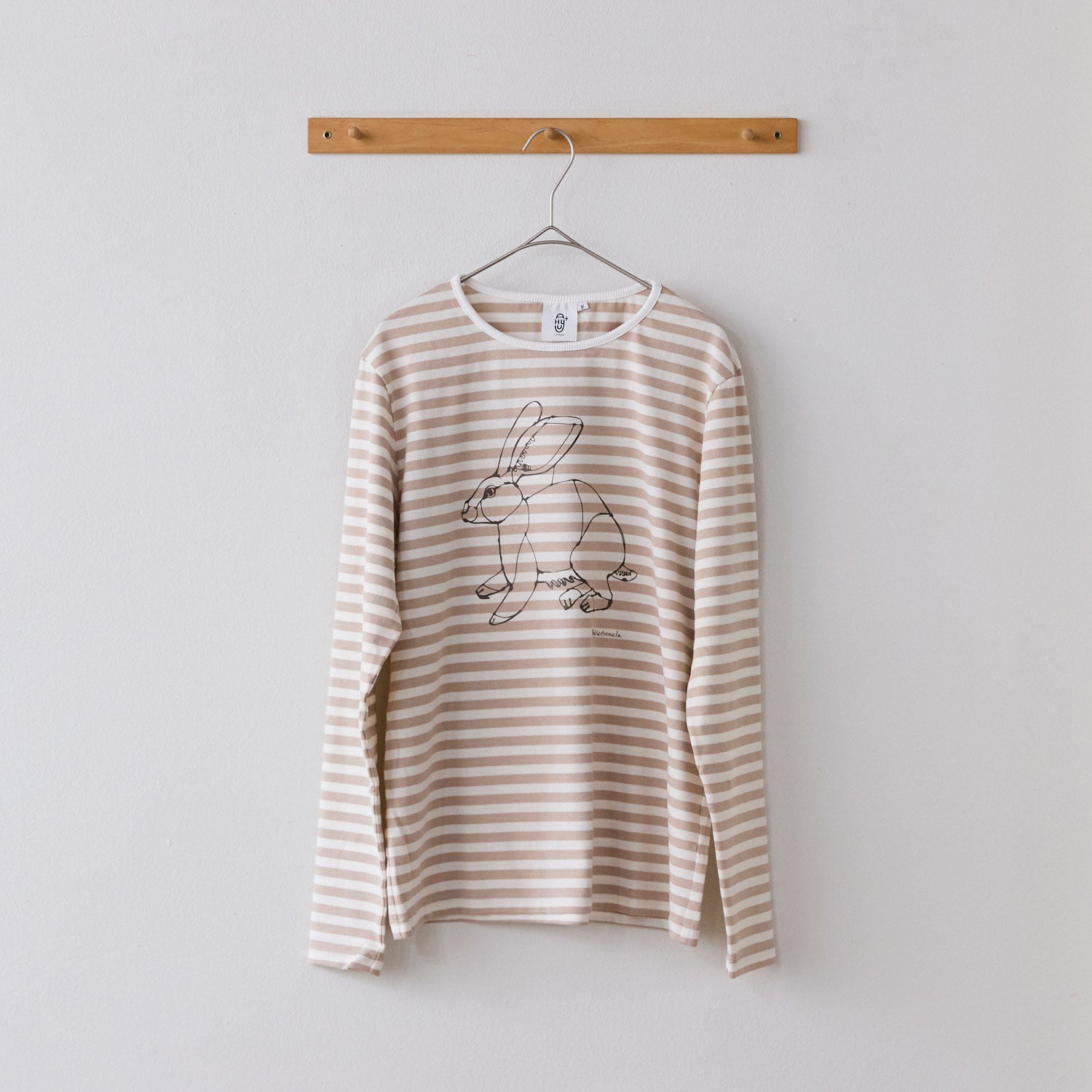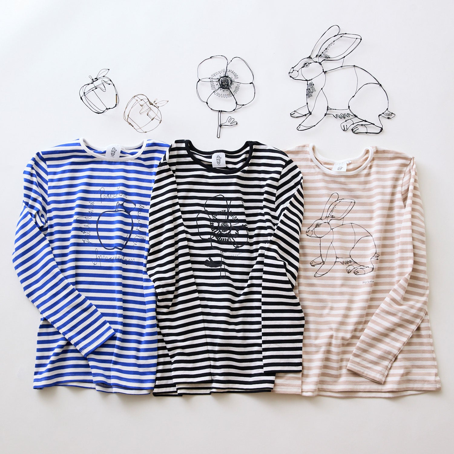 スタンダードなボーダー柄に+HAyUのアートをあしらった、着回しやすいロンTです。