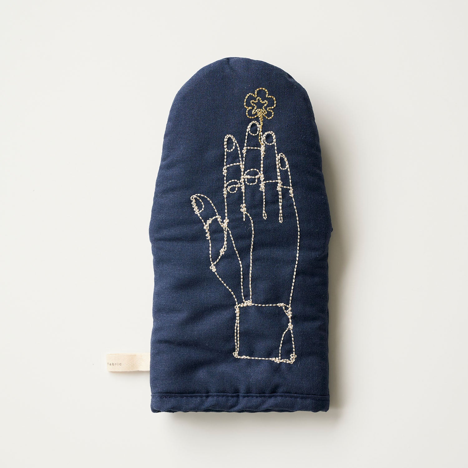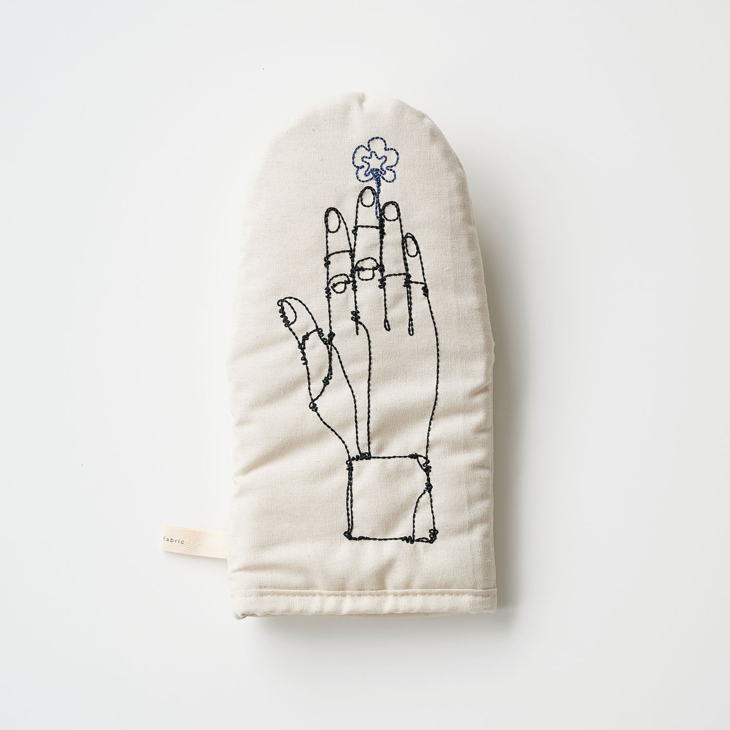 指先にネモフィラのお花が添えられたお洒落なデザインのキッチンミトン。