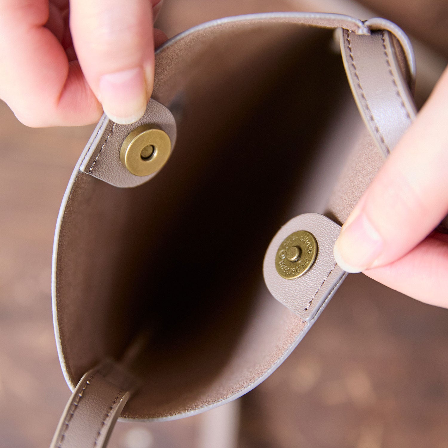厚みのあるエコレザー(合皮)を使用することで、ミニサイズでもしっかりした印象のバッグです。