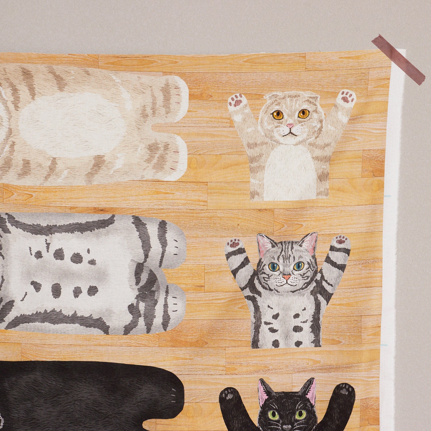 - HOME DECO mini ~床に寝転ぶ猫たち~ パネル生地 綿100%シーチング