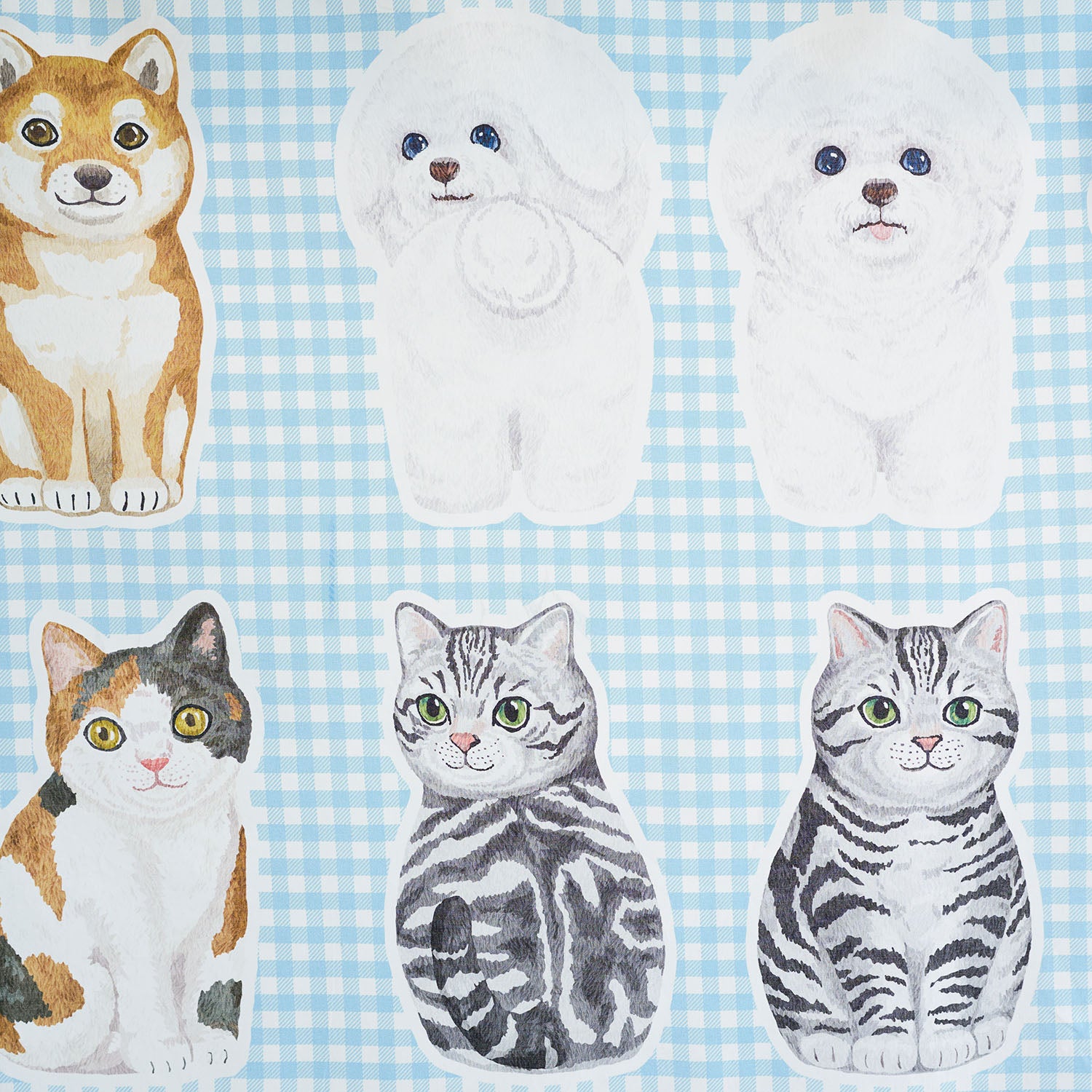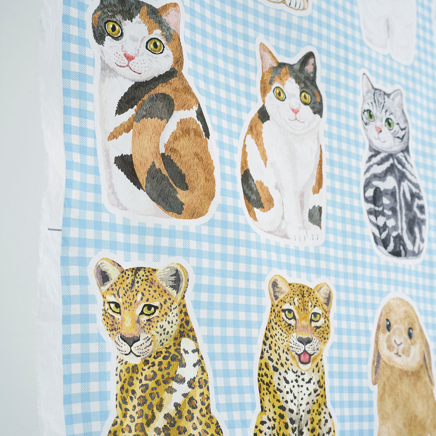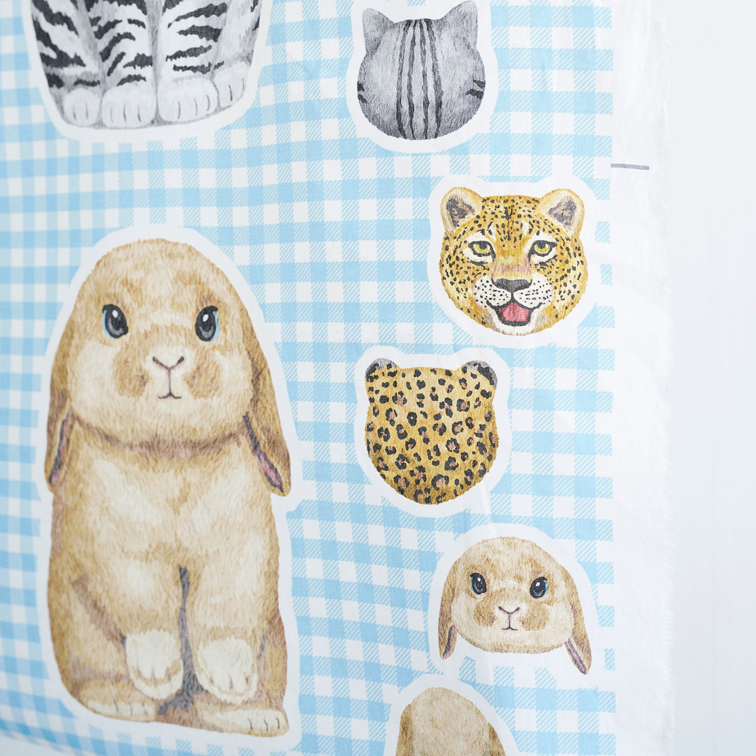 いぬ、ねこ、トラ、うさぎと個性的な動物たちが愛らしくほっこりする生地です。