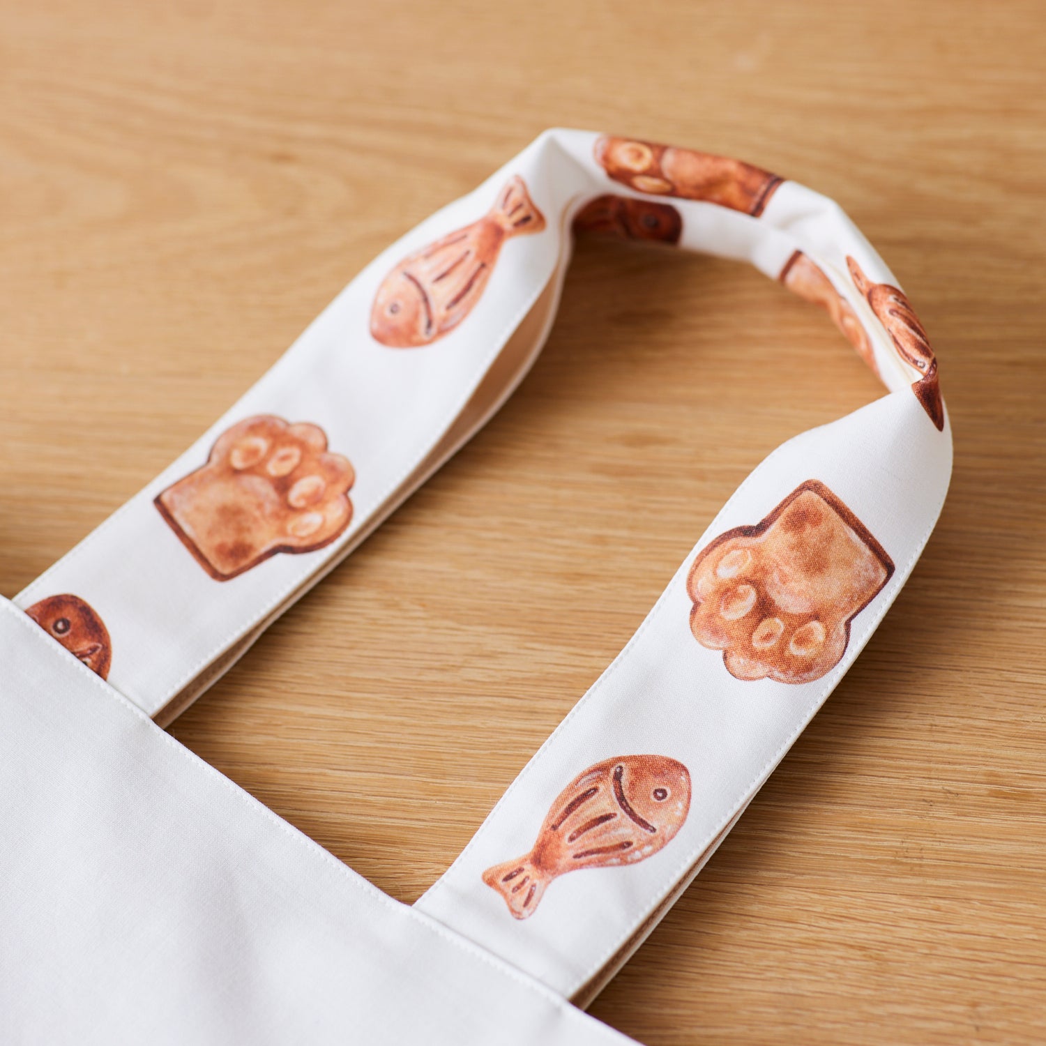 上側の肉球と魚パンはボーダーに切り取って、バッグなどの持ち手として使うこともできます◎